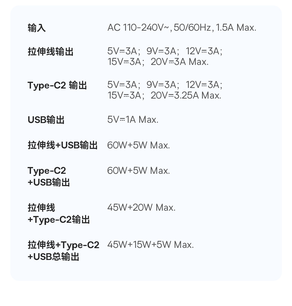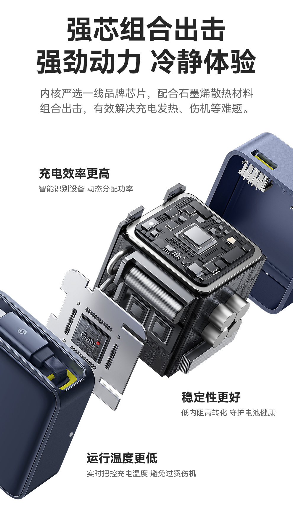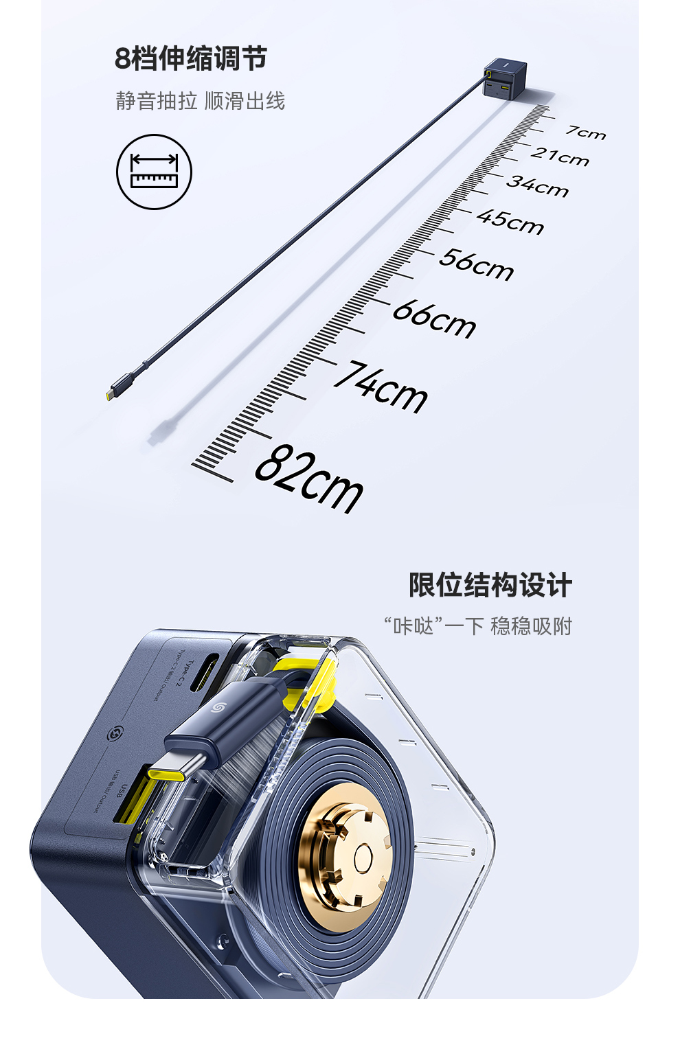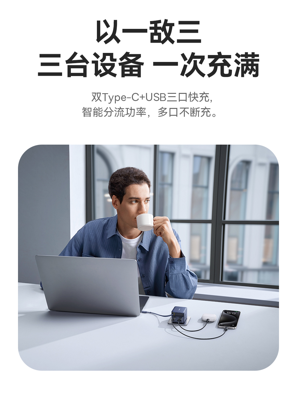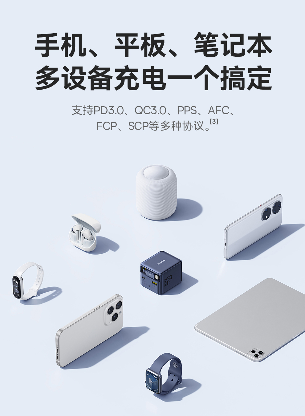 倍思 Super GaN 伸缩线快充充电器 2C+U 65W