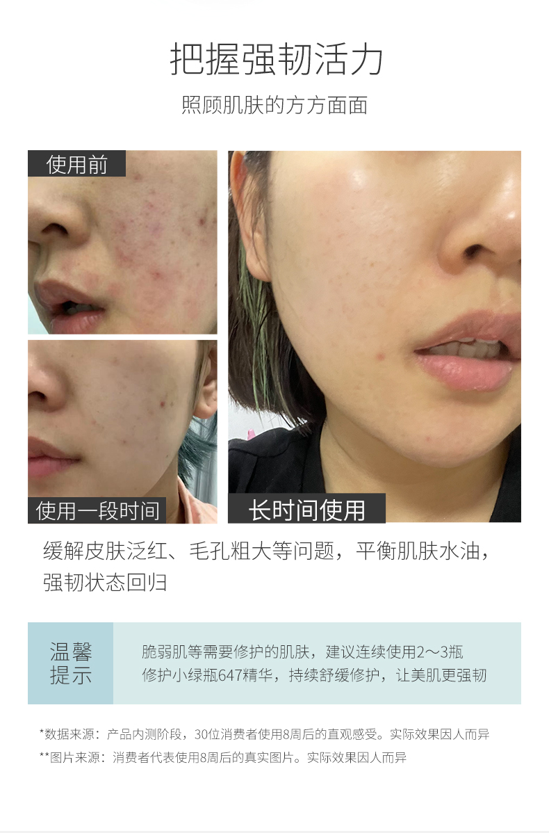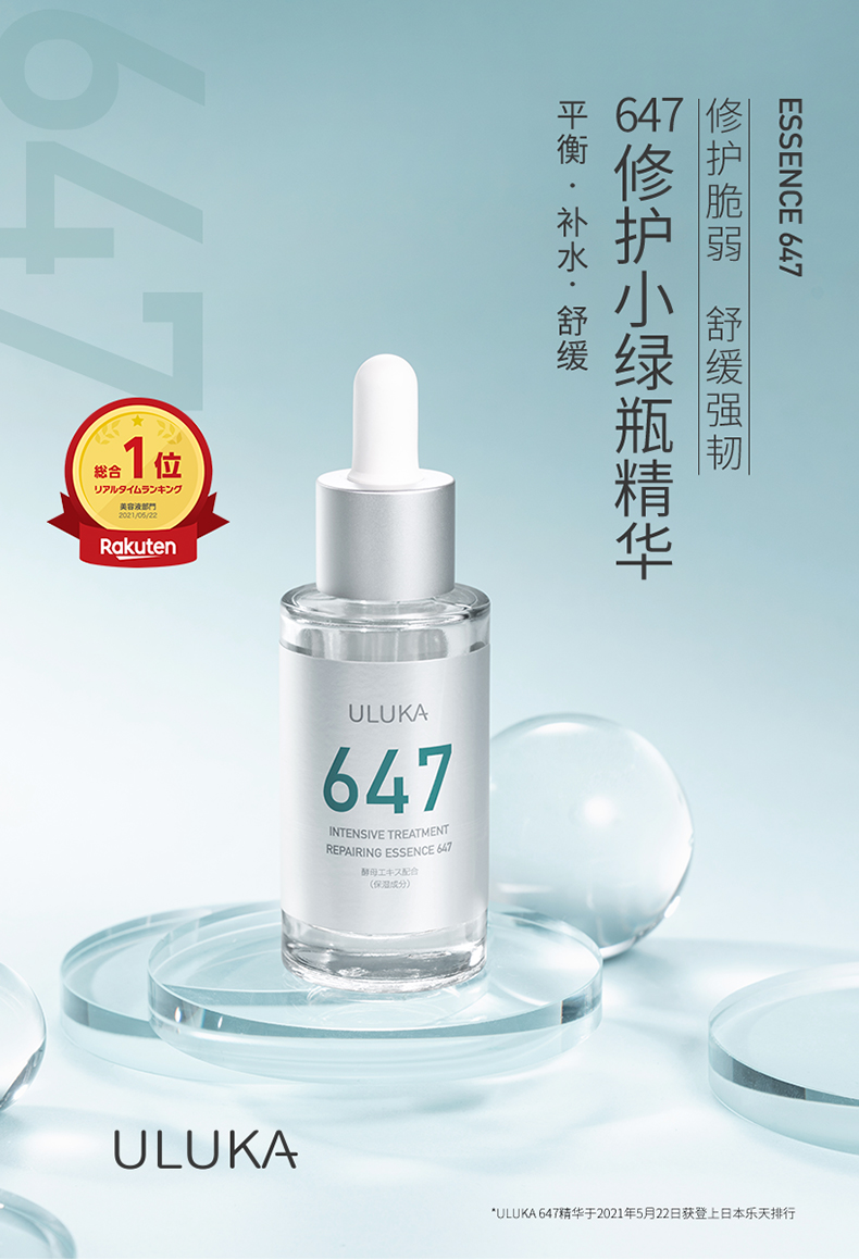 ULUKA 647修护维稳精华小绿瓶 改善痘肌平衡舒缓护肤控油