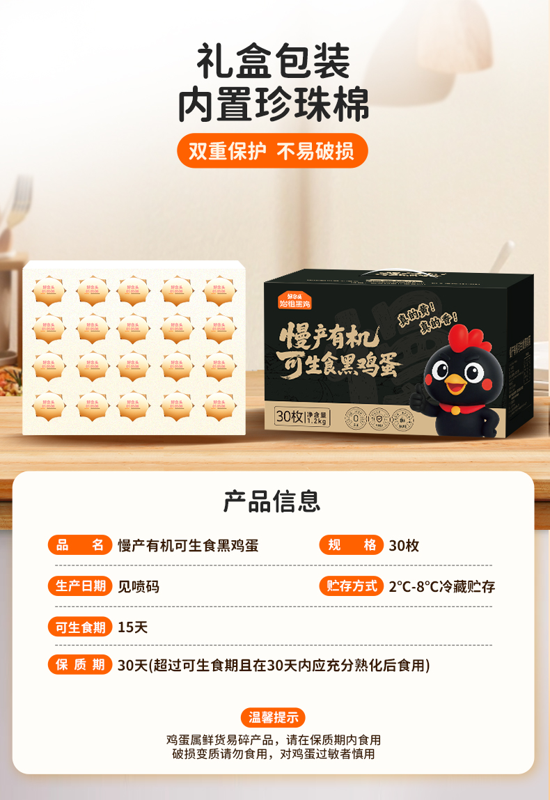 【包装升级】好念头有机可生食鸡蛋 始祖黑鸡鲜蛋无菌30枚礼盒装顺丰