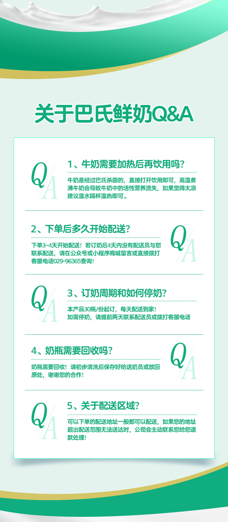 | 1、若订奶后4天内没有配送员与您联系配送,请在微信留言或直接拨打96365查询,谢谢您的合作! |