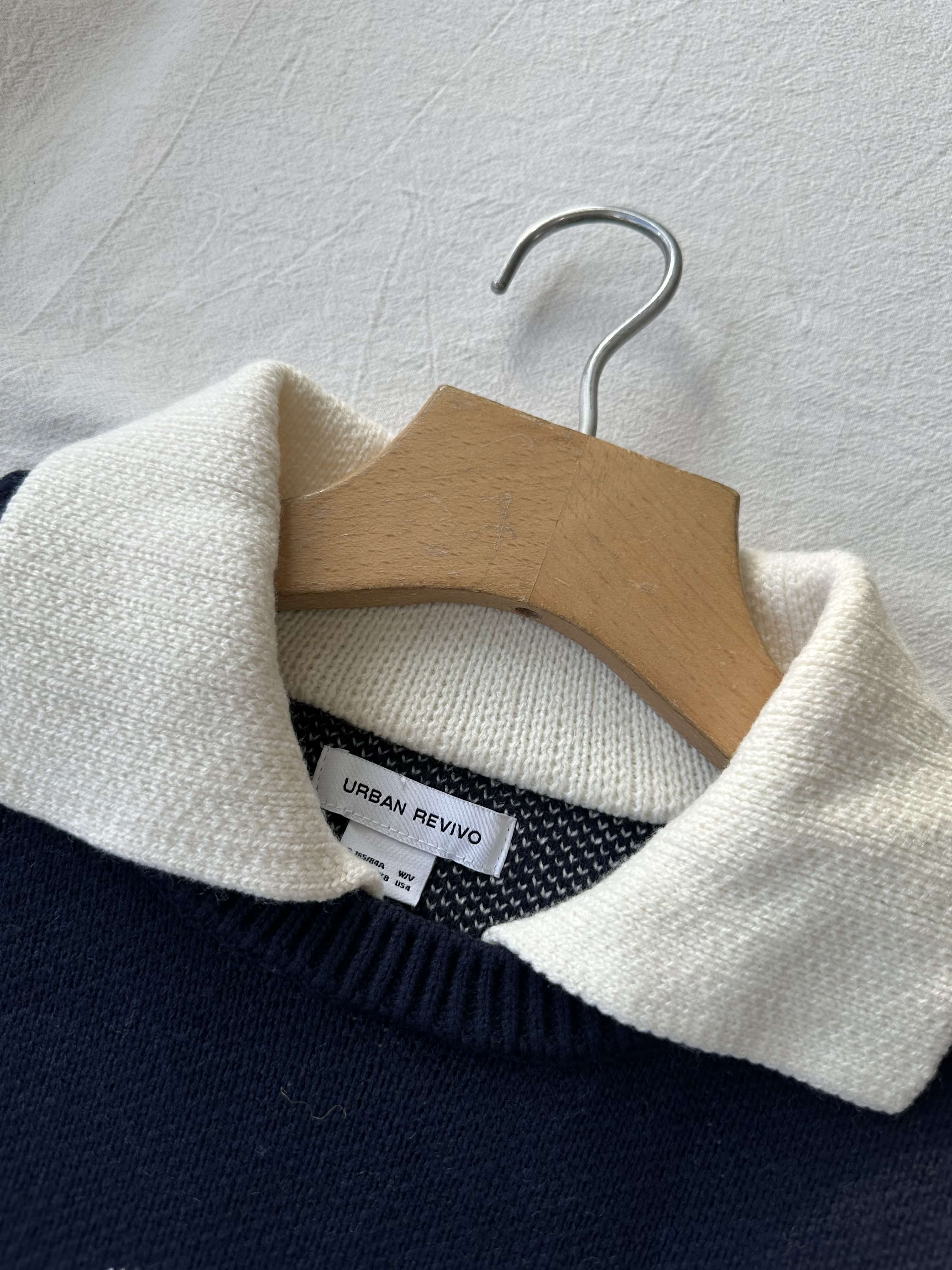 贝壳三 美式复古字母提花假两件毛衣学院风翻领长袖针织衫C102814