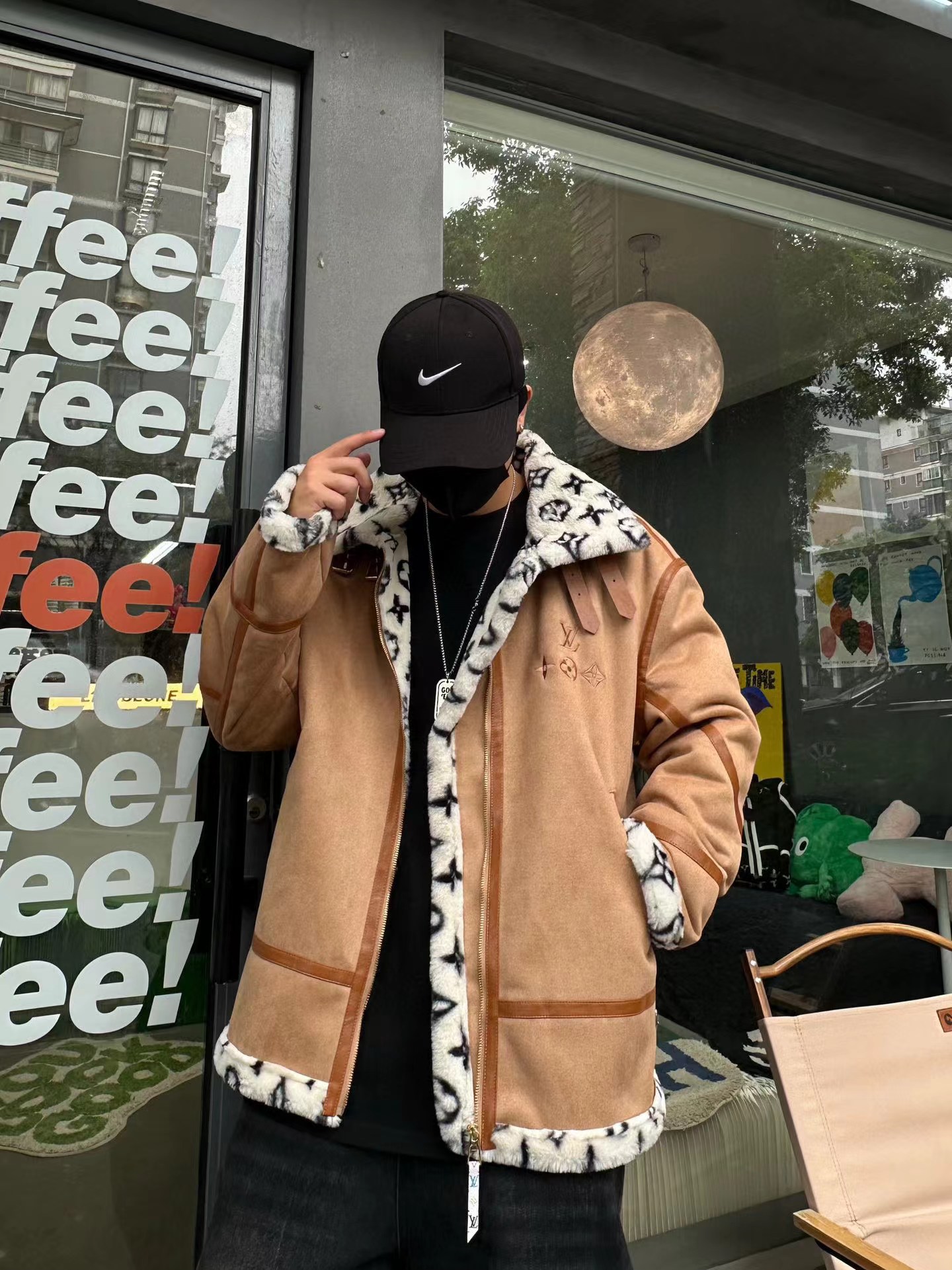 麂皮绒复合内里小兔毛情侣高领加绒加棉外套 定制外表麂皮绒复合面料 内里定制进口仿兔毛 由 55% 聚酯纤维和 45% 羊毛混纺而成 搭配加棉内衬 整件手感柔软舒适 上身透气且具备超强保暖性 精典宽松廓形剪裁 显瘦不挑人 女生建议zui小码
