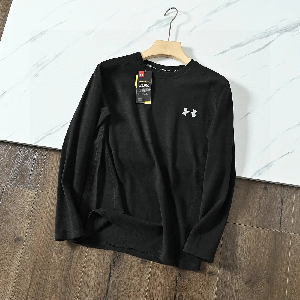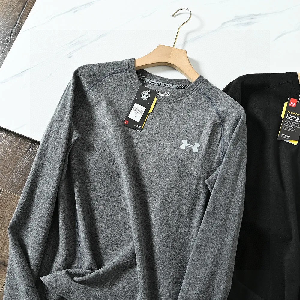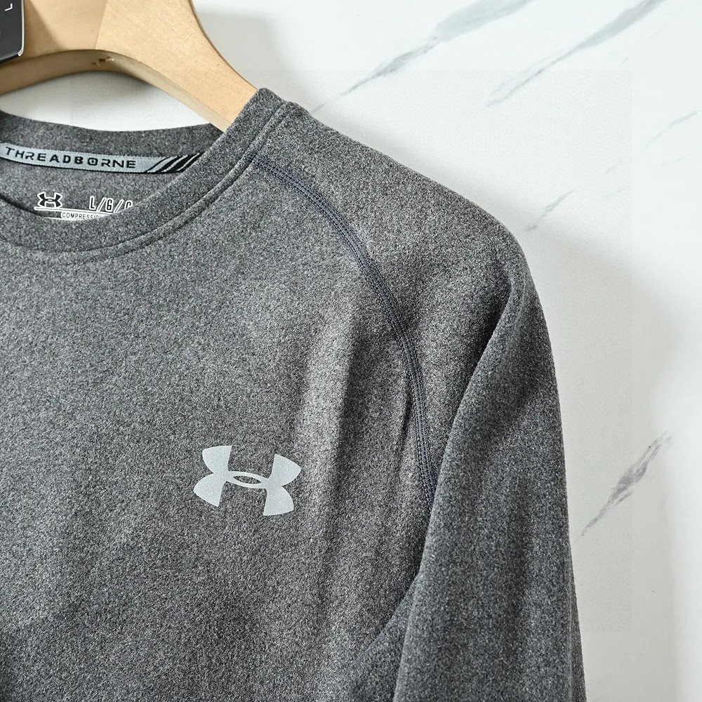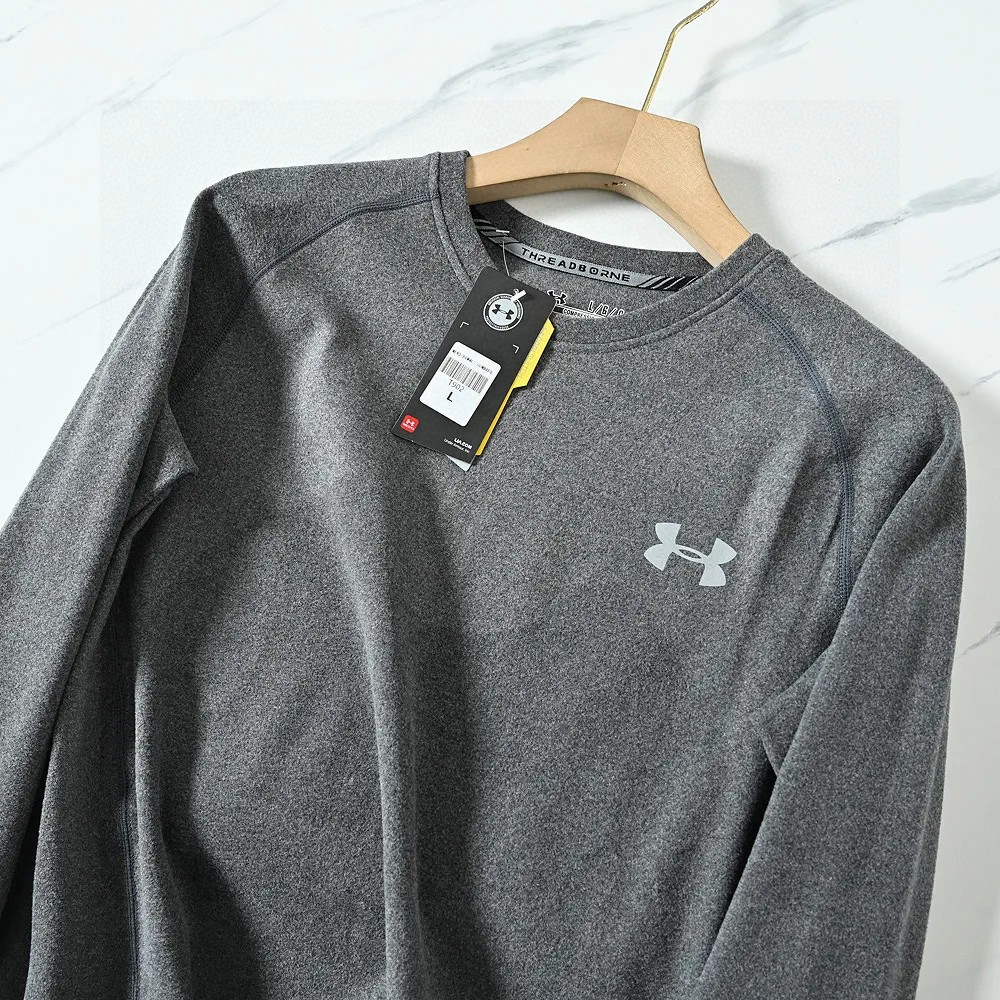 UA安德玛男子小圆领加厚超弹力长袖训练健身运动打底衫保暖内衣上衣,进口双面磨毛德绒加厚面料!强力保暖一件顶三件!