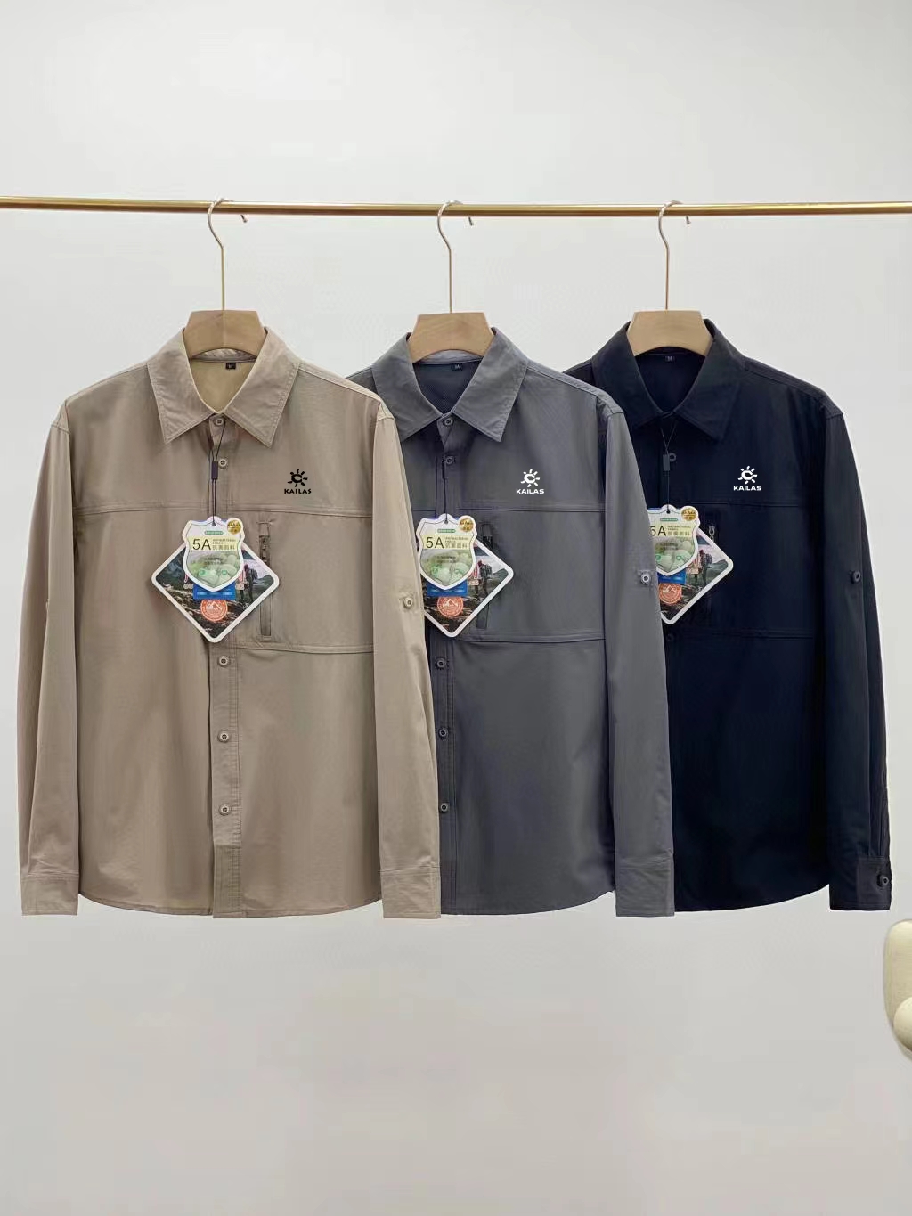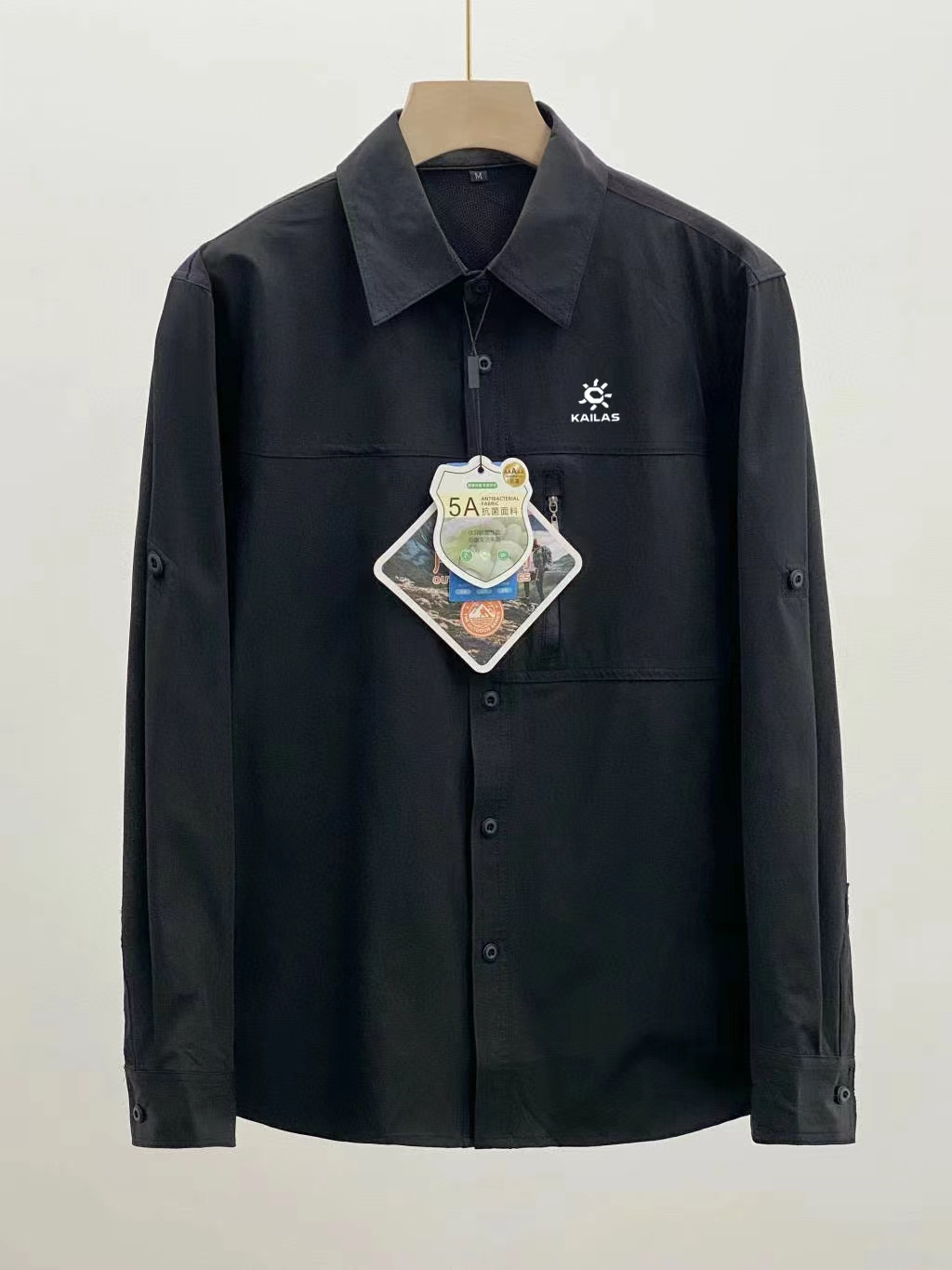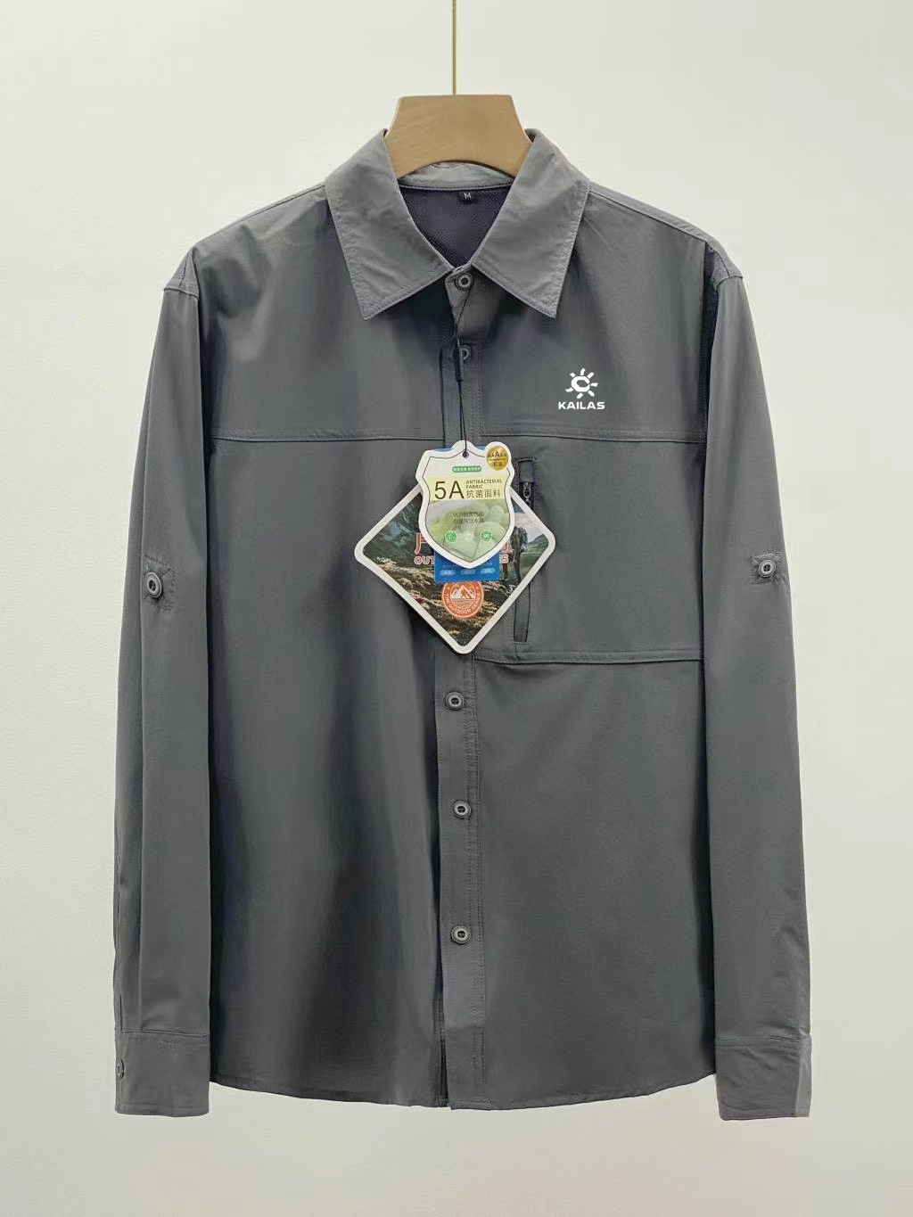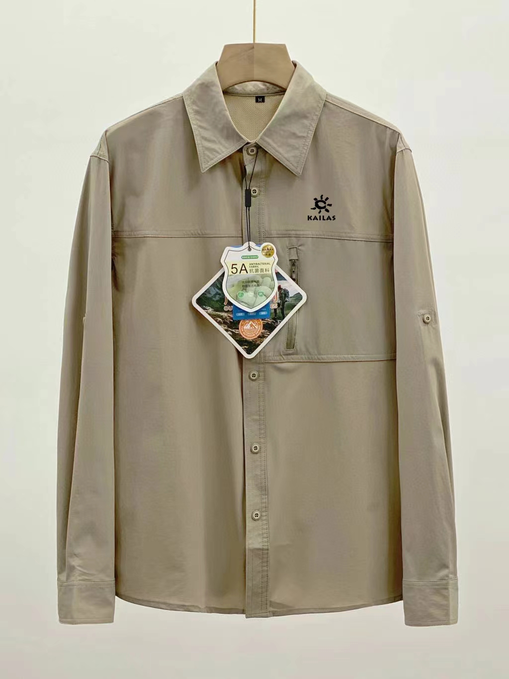 夏季冰丝弹力薄款速干工装防水防晒防蚊PL0L0衫长袖衬衫防晒衣。户外防晒防蚊速干长袖衬衫 适合户外露营 徒步登活动!!一款技术含量高、比较耐用的多用途衬衫。功能设计比较实用,版型独特又好看,既能休闲穿搭也能户外徒步,优秀。采用改进型耐撕裂织物与生物基纱线织物制成。技术设计上能经得起不少户外环境考验,紧密编织结构意味着它具备更快干燥速度,这样出汗后不容易粘在你的皮肤上。而且这种致密结构,蚊子不容易穿透叮咬进入你的皮肤。穿起来柔软相对静音,既可以作为精典的徒步旅行功能快干衣,又可以当做城市的日常休闲使用。该衬衫具备两个纵向拉链胸袋,可额外竖起的纽扣领设计(可用于挡风与颈部区域的额外防晒),同时袖子可卷起的隐藏设计,以及更安全。