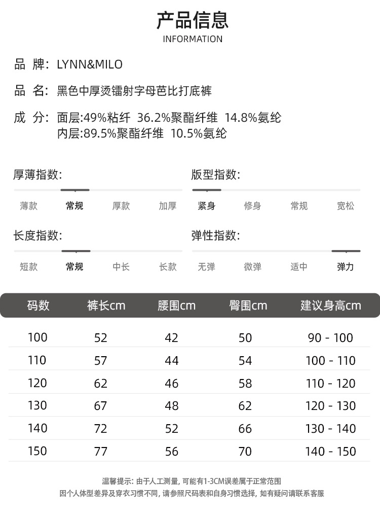 【春上新】8楼琳麦罗 LYNNMILO黑色中厚烫镭射字母芭比打底裤 吊牌价:338元 活动价:169元