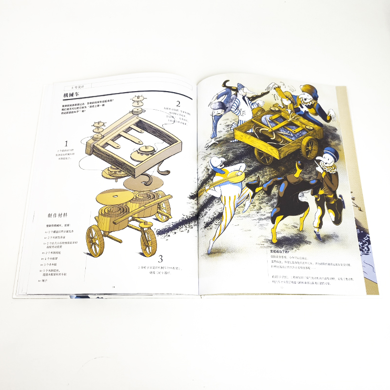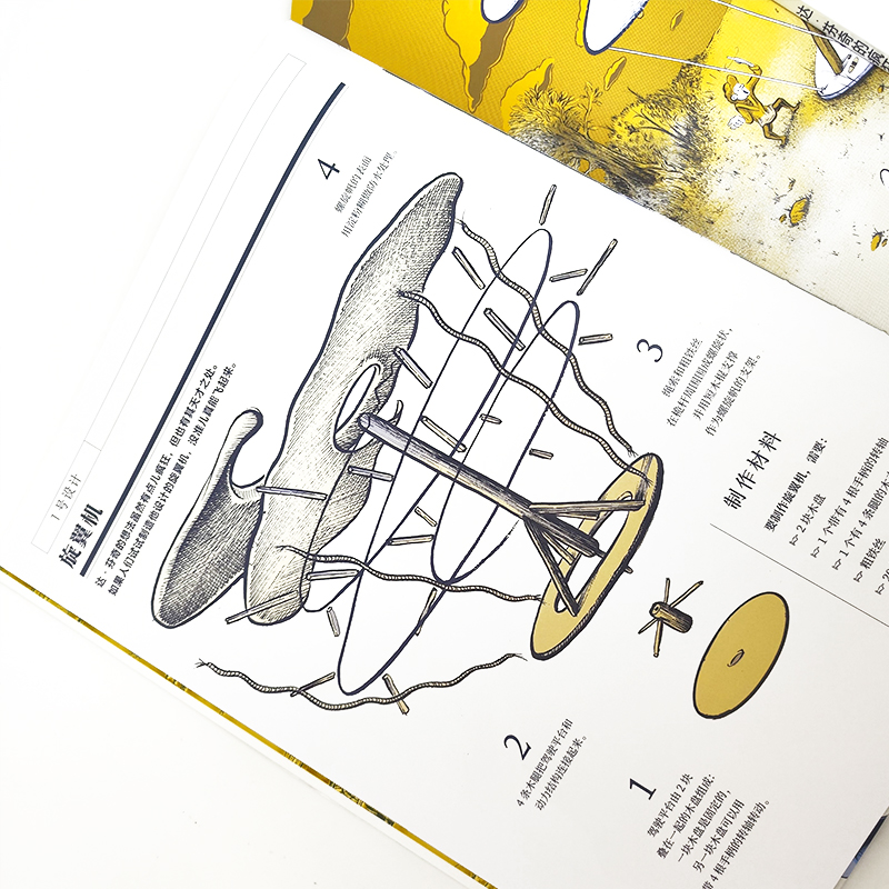 达·芬奇生活的时代并没有复杂的机械零件,所以他只依靠杠杆、滑轮、齿轮等简单机械来完成设计。巨型旋翼机、发条驱动的机械车、可以旋转的桥……这些大胆新奇的发明都只使用了简单的零件!拿起手边的工具(牙签、毛线、胶水、木棍……),按照书里清晰的制作步骤,想想达·芬奇是怎么做的,你也可以完成你的发明!