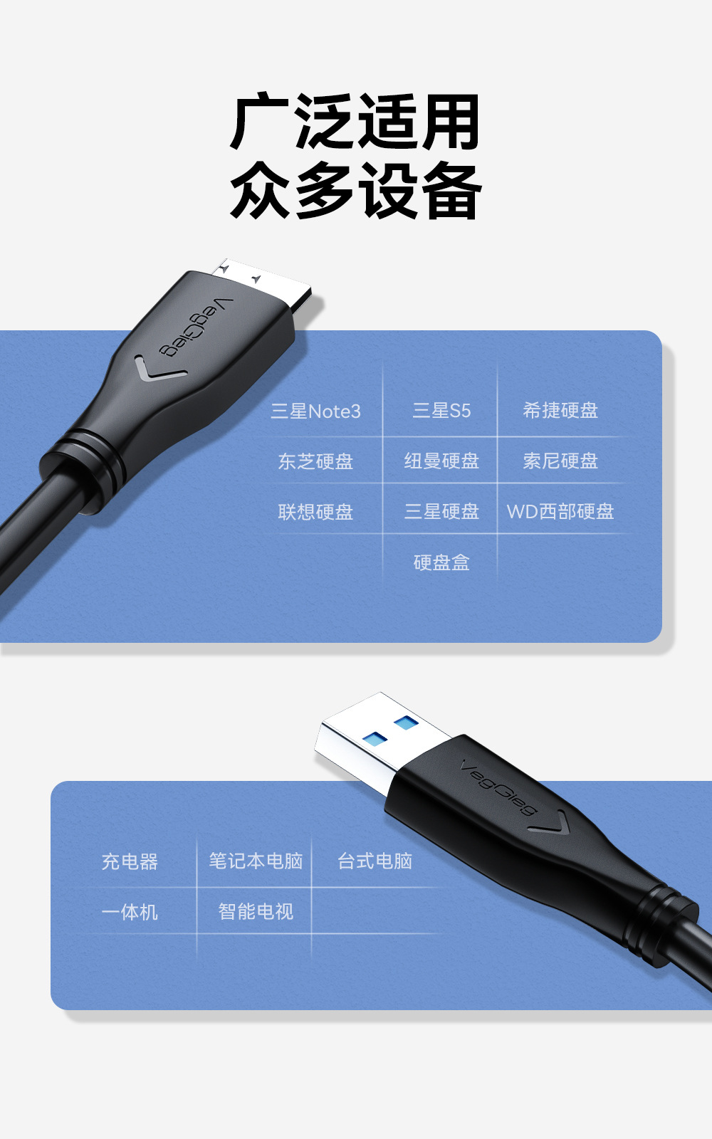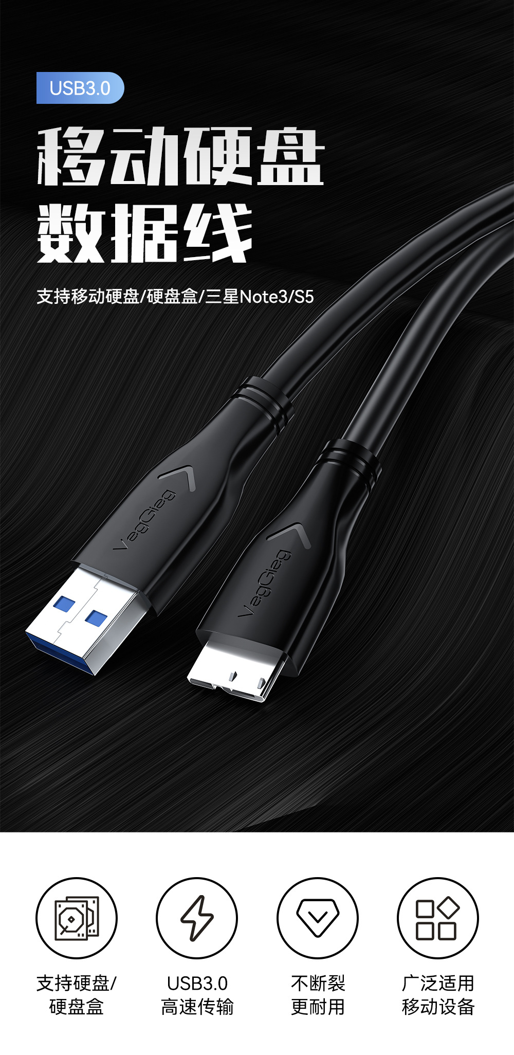 严选USB3.0 A转Micro B硬盘线电脑高速连接游戏硬盘盒0.5M数据线1条