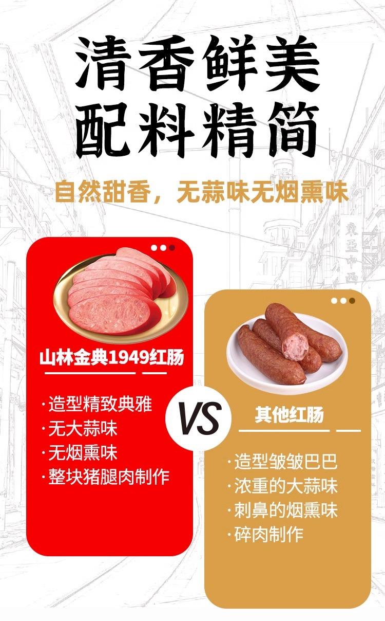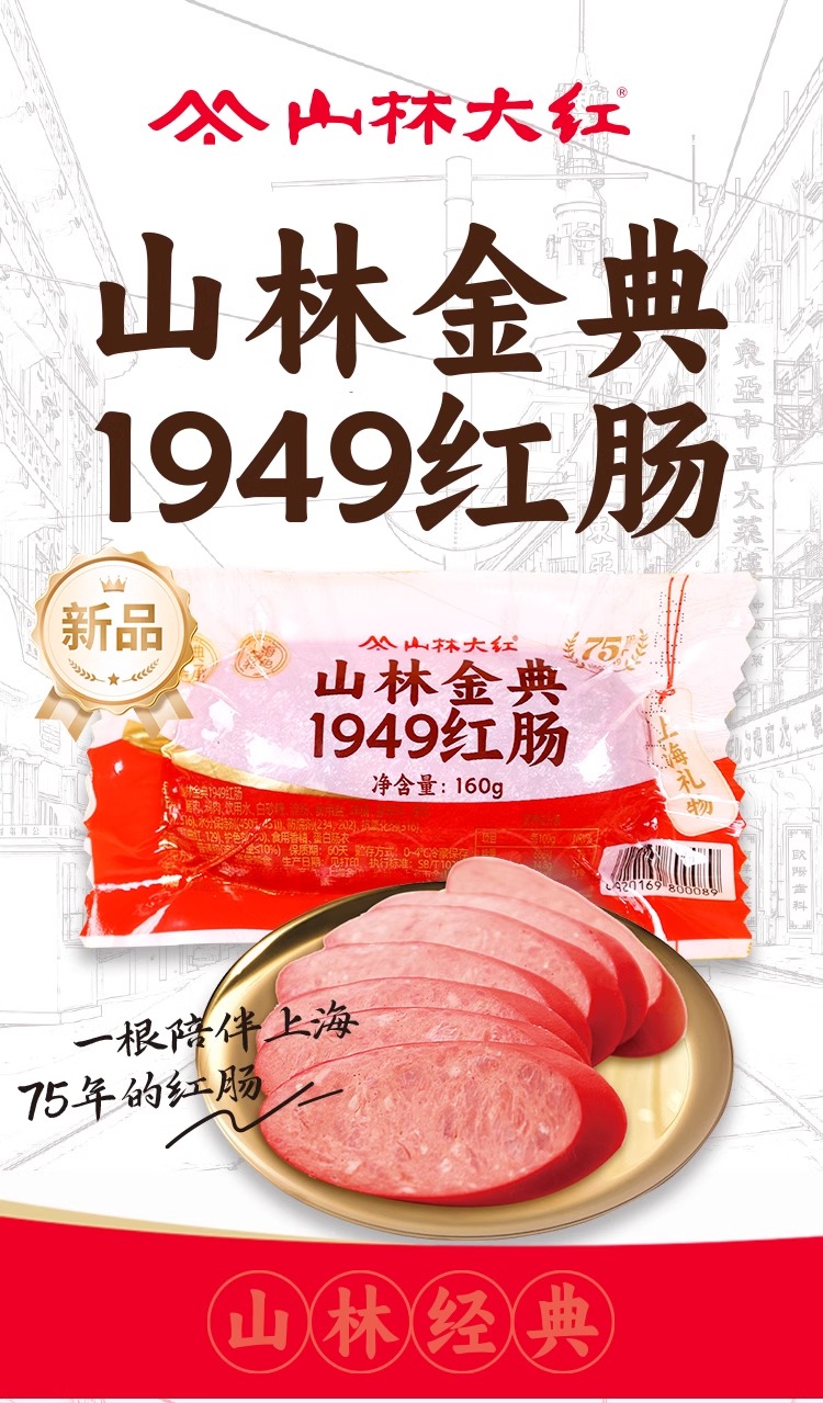 【晁然学姐推荐】正宗上海山林大红金典1949红肠特产开袋即食小包