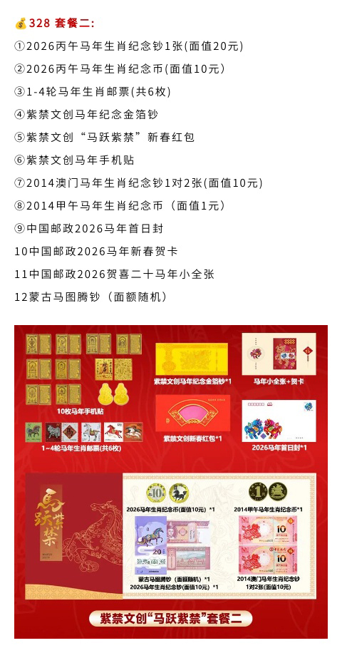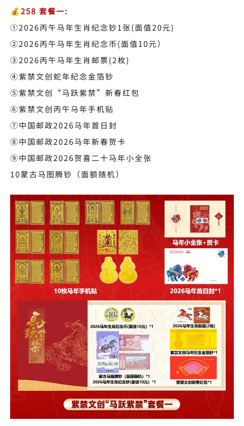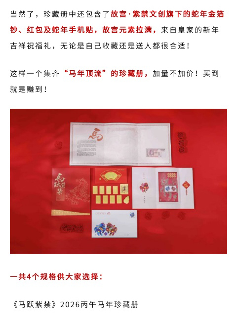 《马跃紫禁》2026丙午马年珍藏册 含有1~4轮马年邮票【预售1月9号发货】