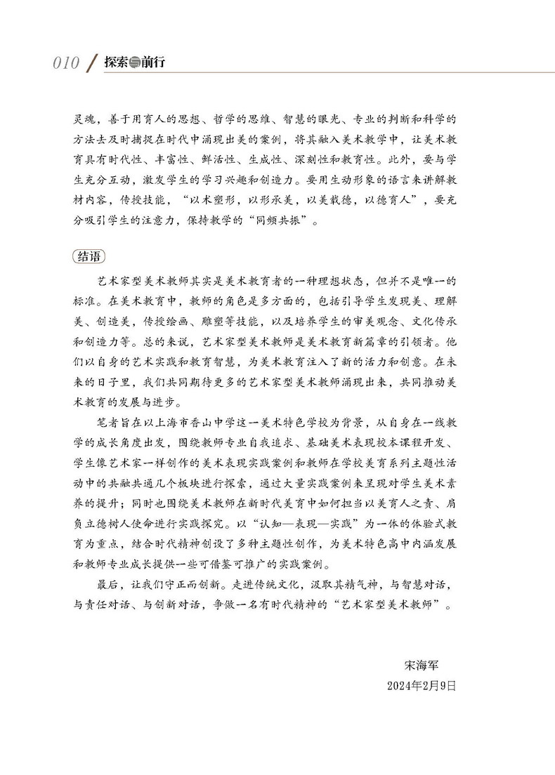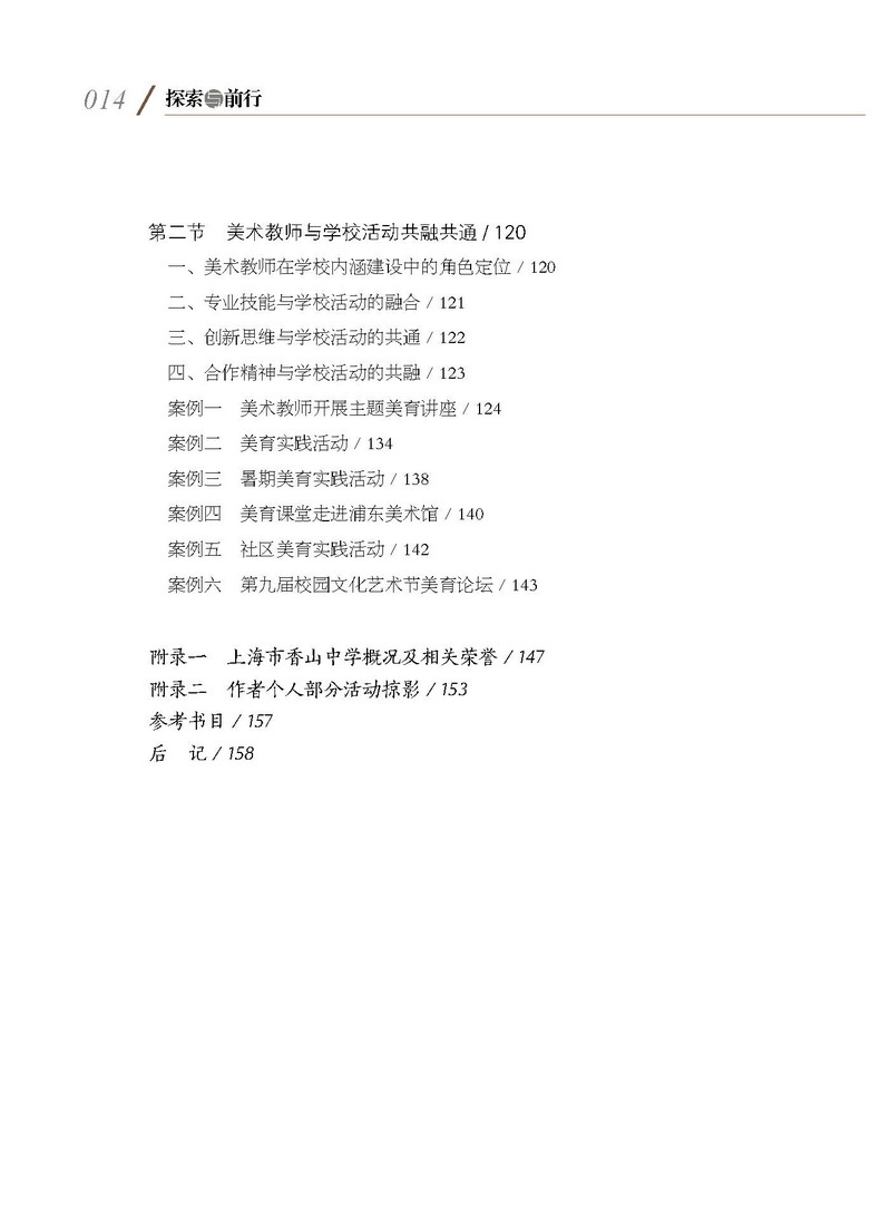 本书以作者追求新时代;艺术家型美术教师的成长之路为线索,以上海市香山中学这所美术特色学校为范本,呈现出作者在美术校本课程开发、教师专业追求、学生美术表现培养等美术教育教学方面所做出的开拓性努力。书中阐述了新时代背景下;艺术家型美术教师的特定内涵,以及如何落实美术学科核心素养,实现;以美育人、立德树人的根本育人目标,为美术特色学校内涵发展和教师专业成长提供了可资借鉴与学习的实践经验。