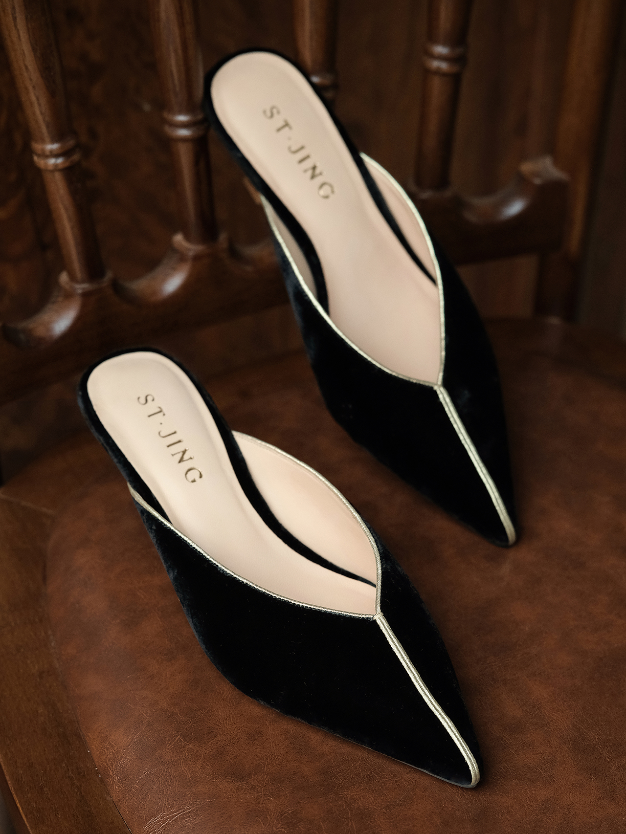 下架|盛唐婧 | 墨阑-真丝丝绒穆勒鞋(特殊商品不退不换)-[特价品]