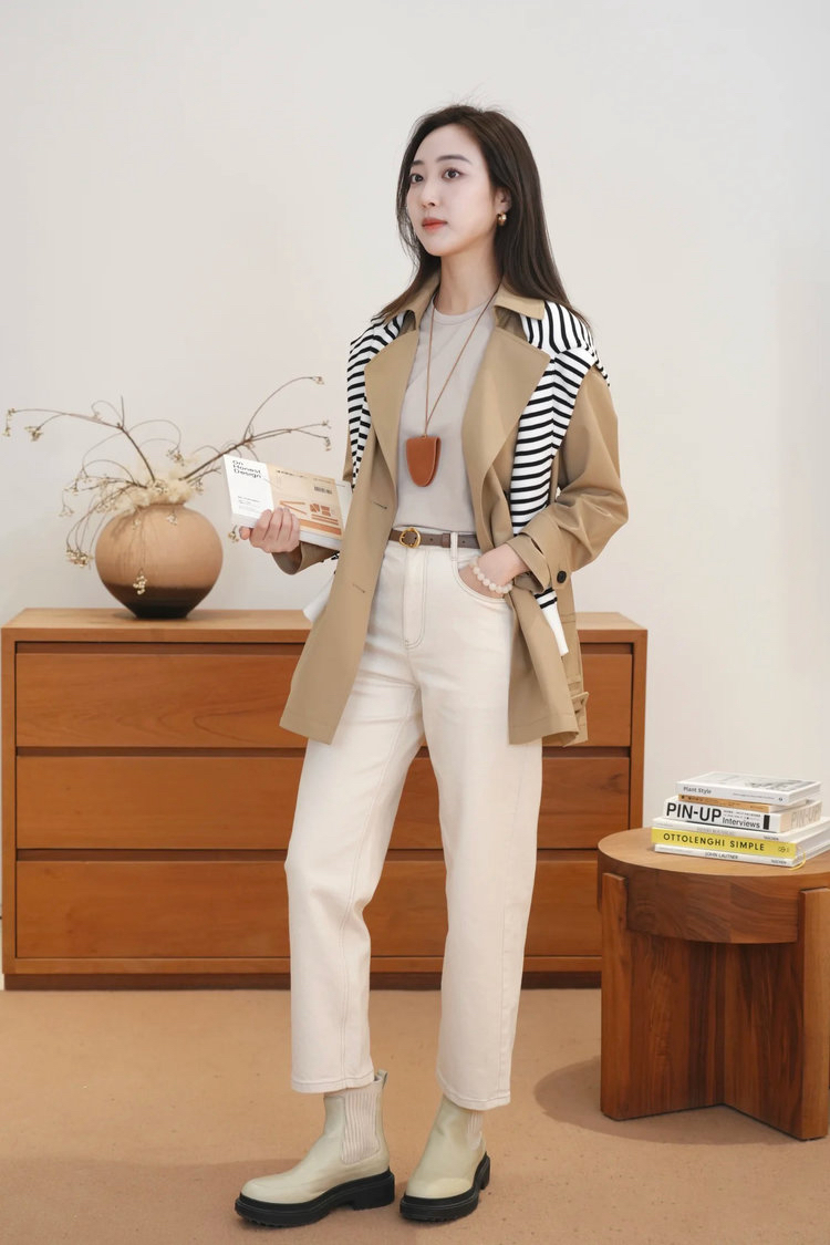 有一种绅士般的风度与尺寸,无论是为了简化繁琐搭配的偷懒选择,还是为了搭配不出错而打的安荃牌,穿风衣的女人都有乘风破浪的魅力~