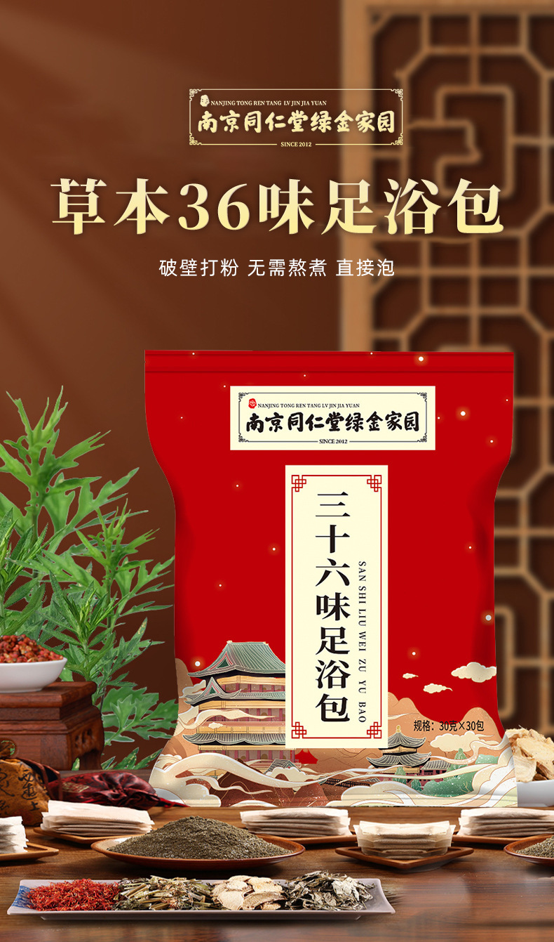 【草本36味足浴包!南京同仁堂绿金家园】36味中药材研磨打粉,真材实料+科技大额无缝结合,低温破壁不用熬煮,艾草足浴粉,草本足浴包L