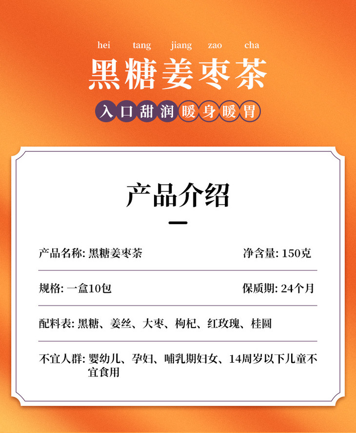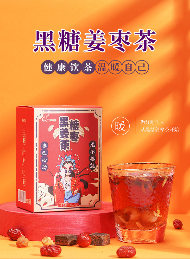 【买一送一!好气色喝出来】黑糖姜枣茶,温暖呵护,10袋/盒/150g,红糖黑糖红枣大姨妈姜汤夏日中式好物健康好吃