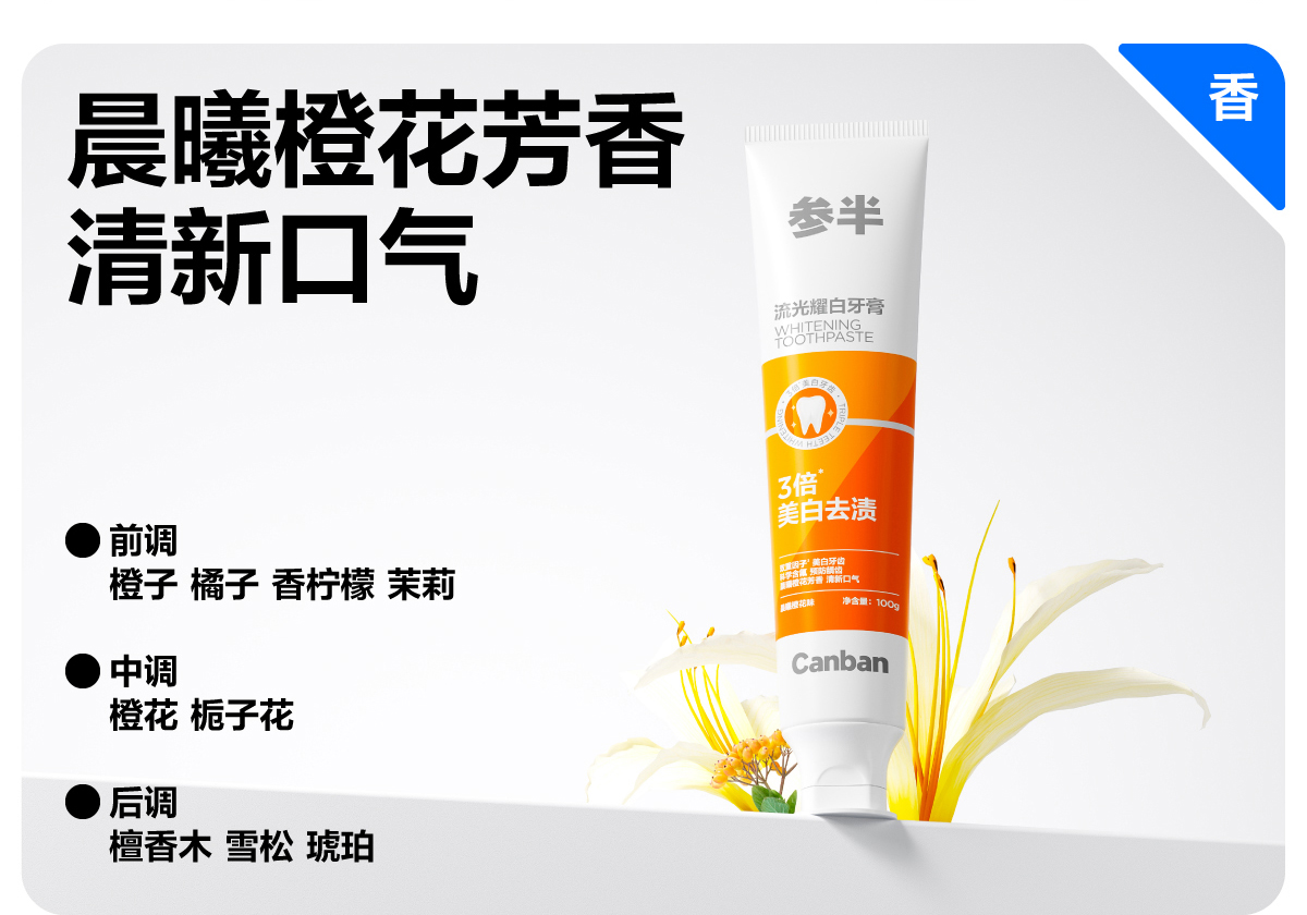 参半流光耀白牙膏100g