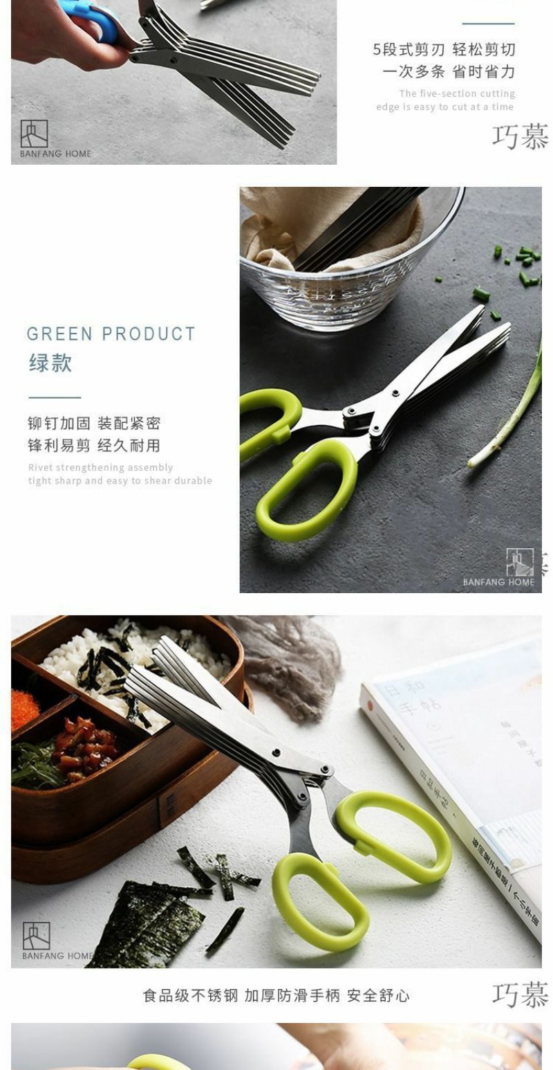 五层不锈钢葱花剪刀神器多功能多层紫菜辅食剪碎纸剪刀厨房食物剪
