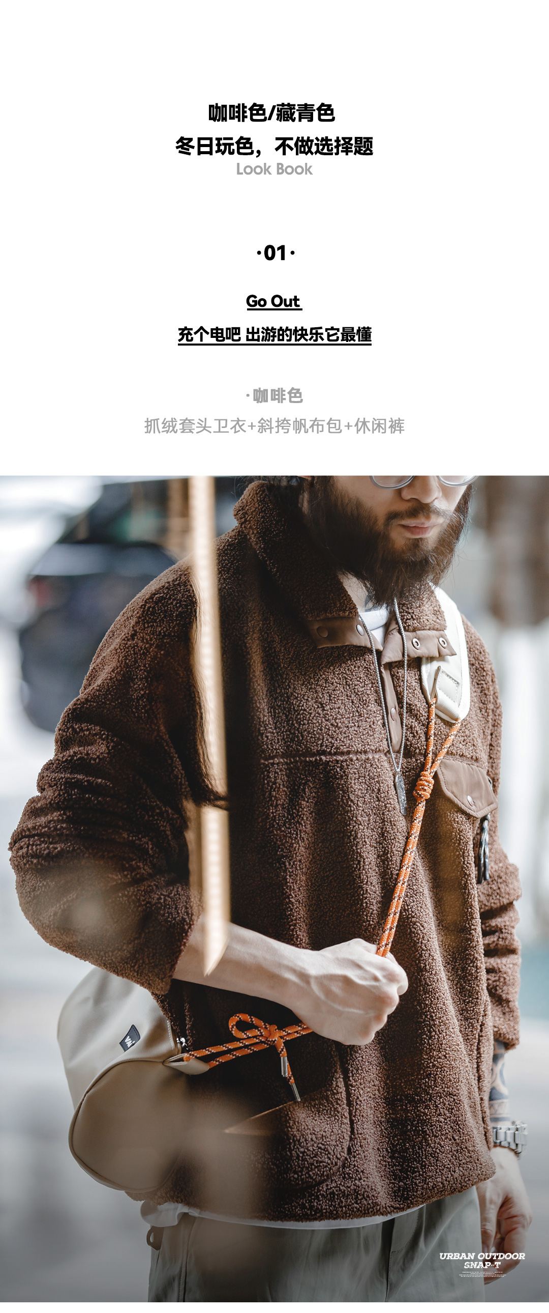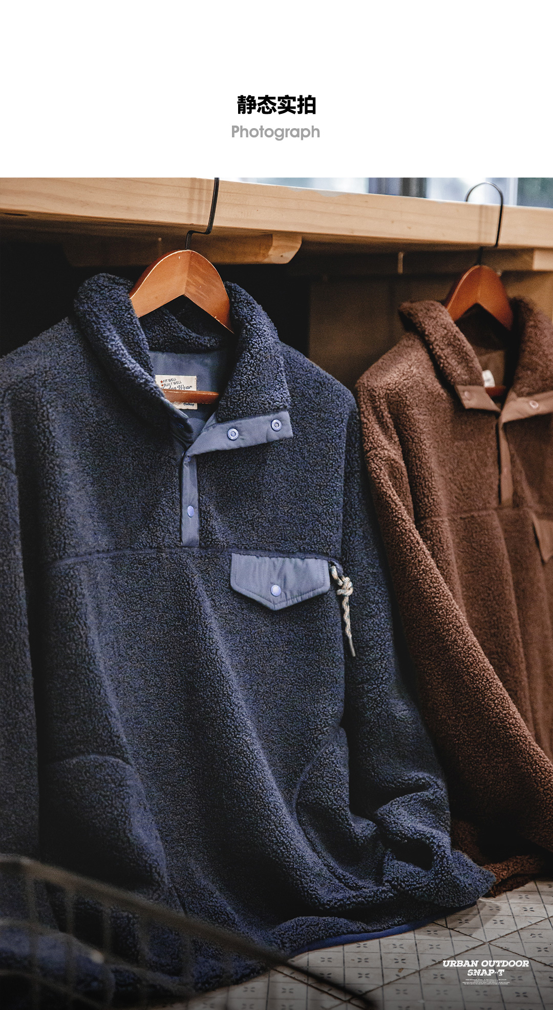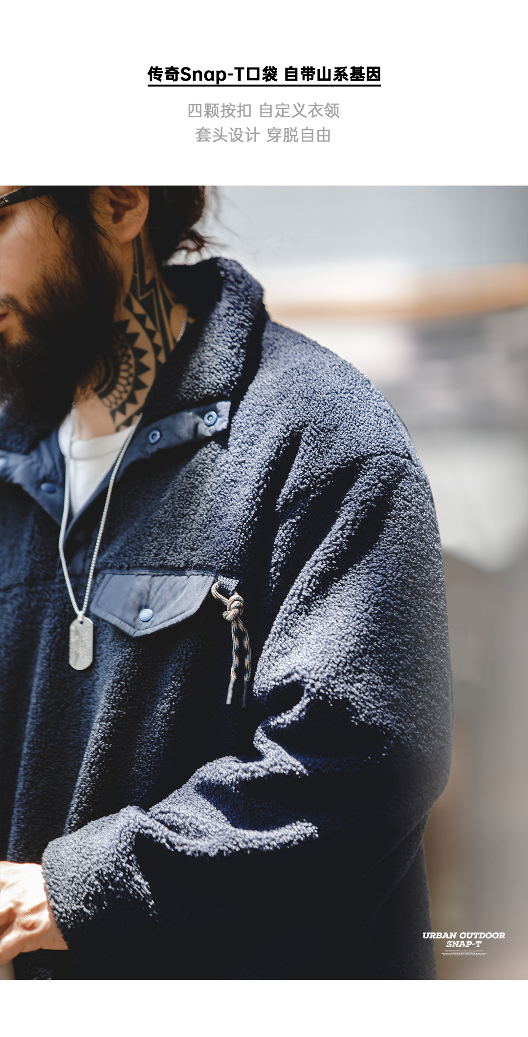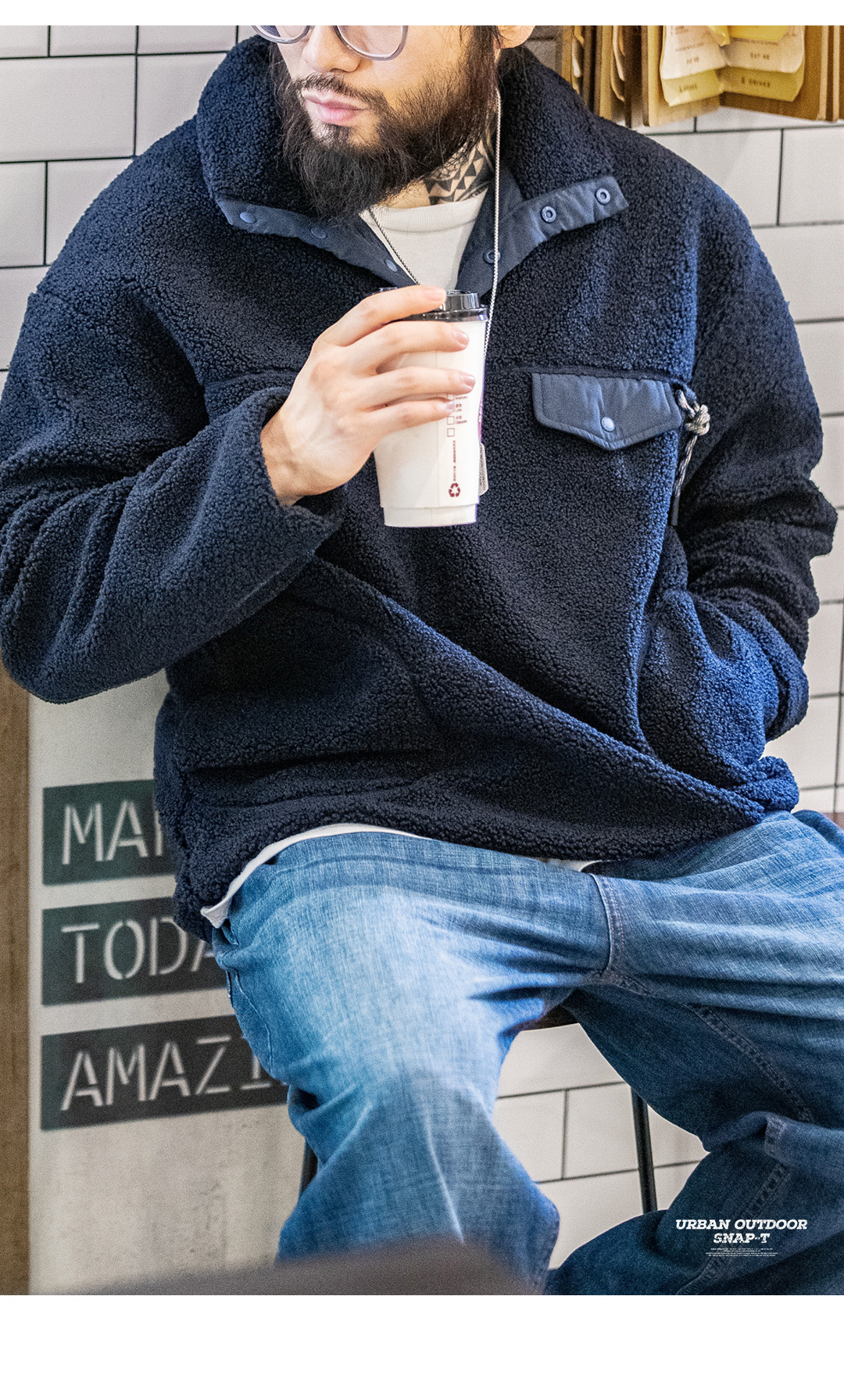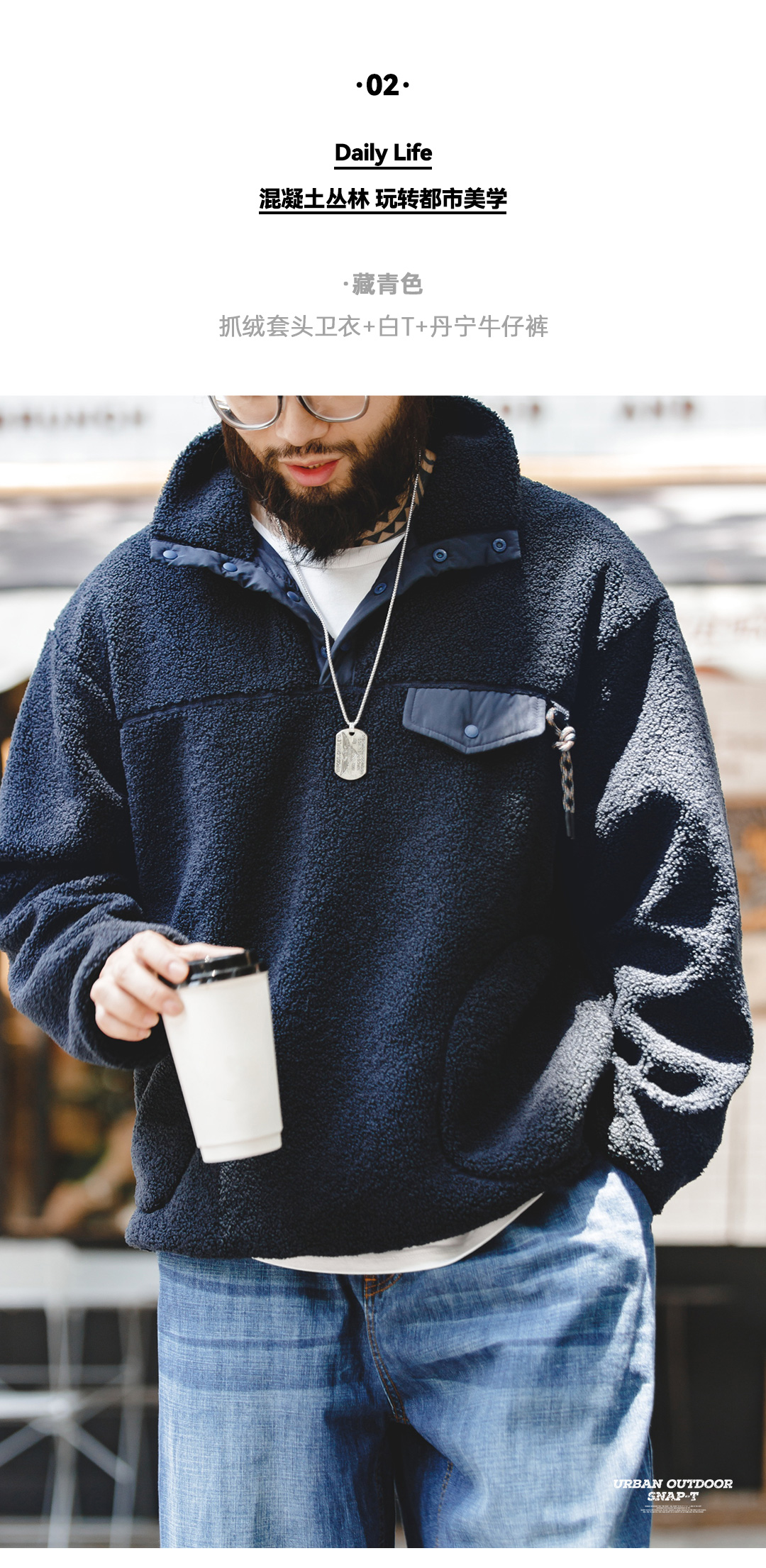 马登工装美式休闲半开襟抓绒卫衣立领摇粒绒套头衫保暖外套男秋冬