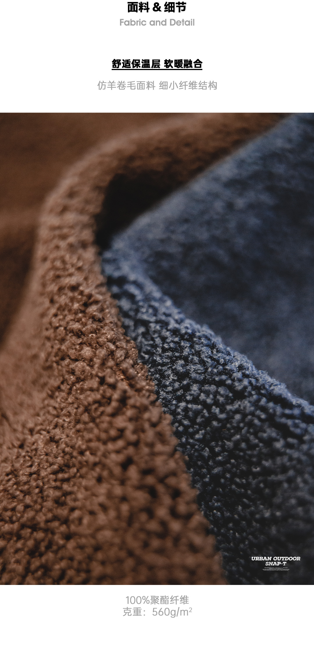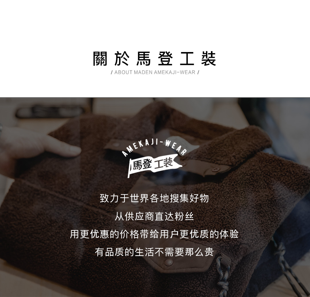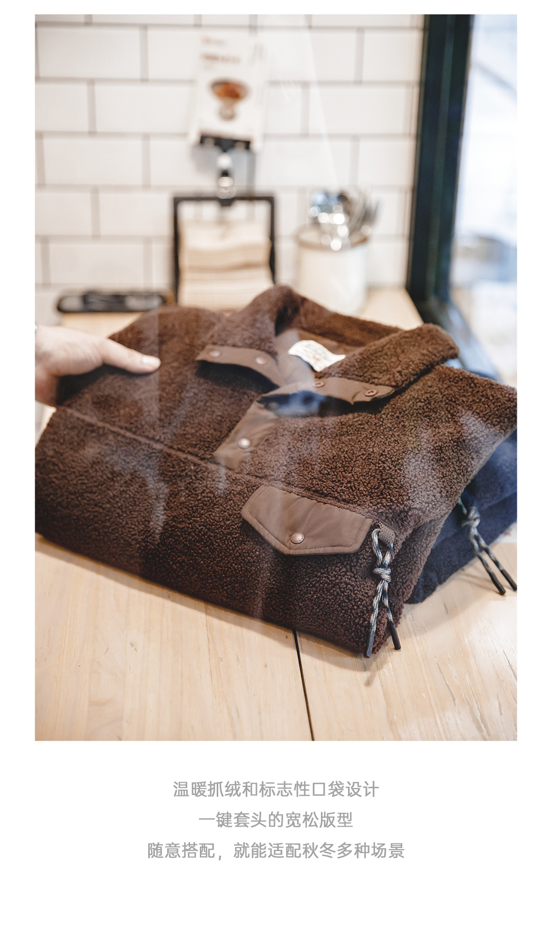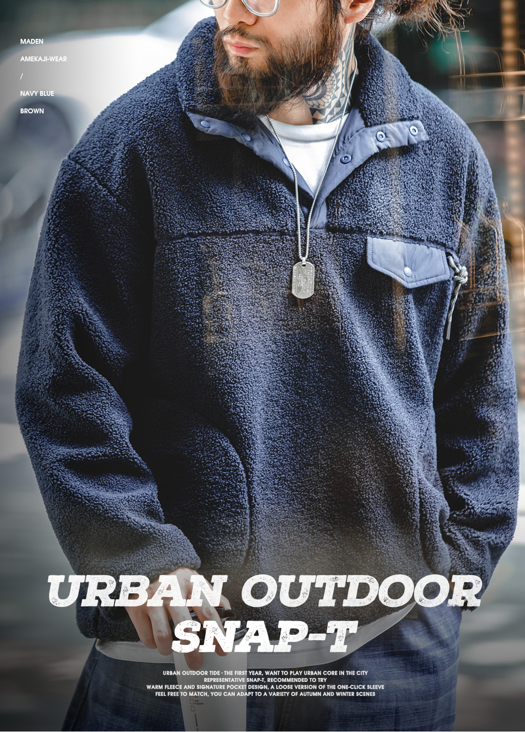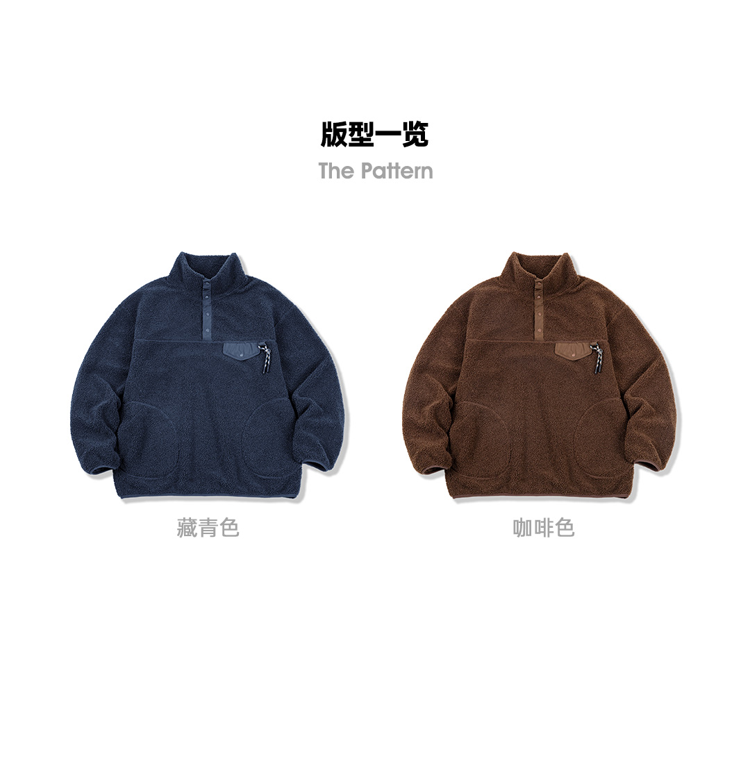 马登工装美式休闲半开襟抓绒卫衣立领摇粒绒套头衫保暖外套男秋冬