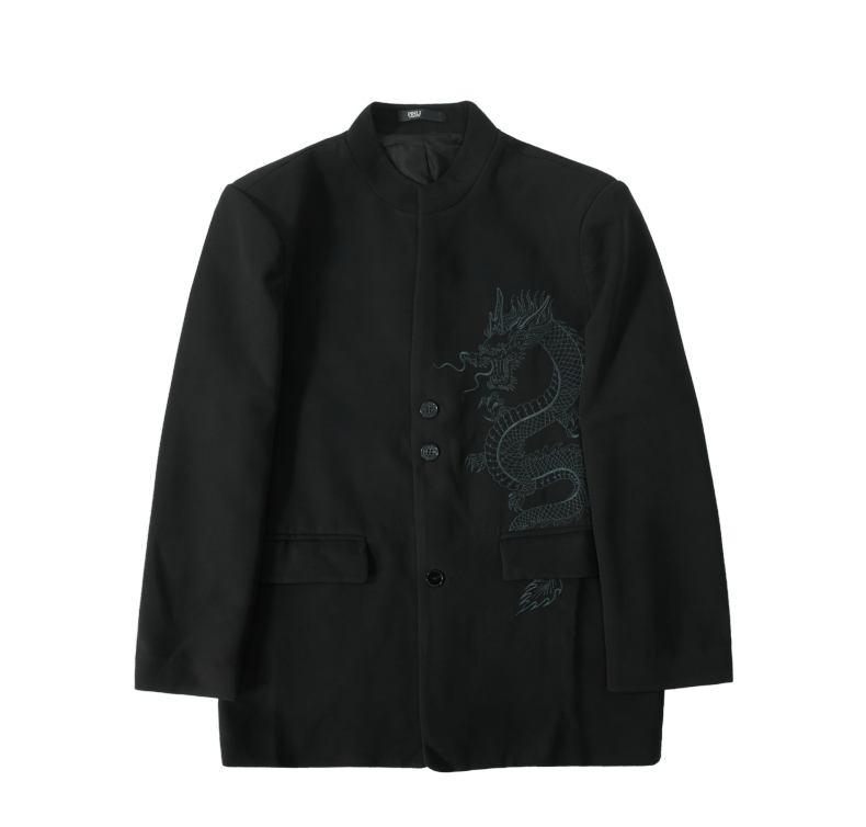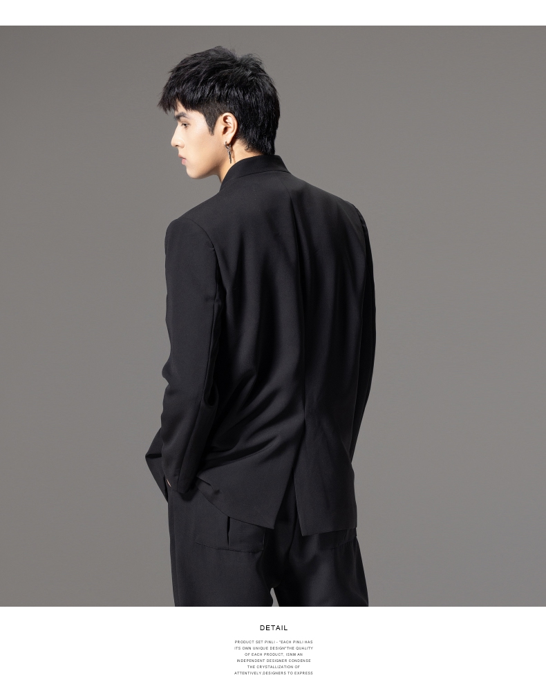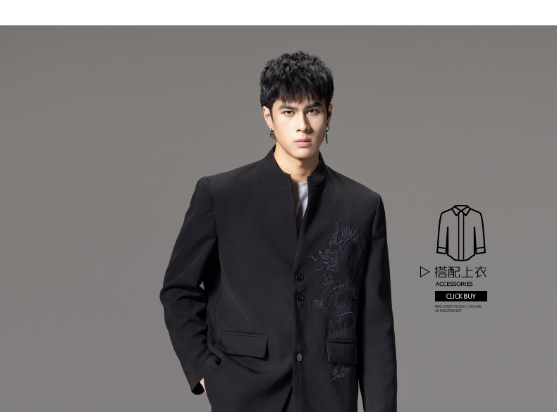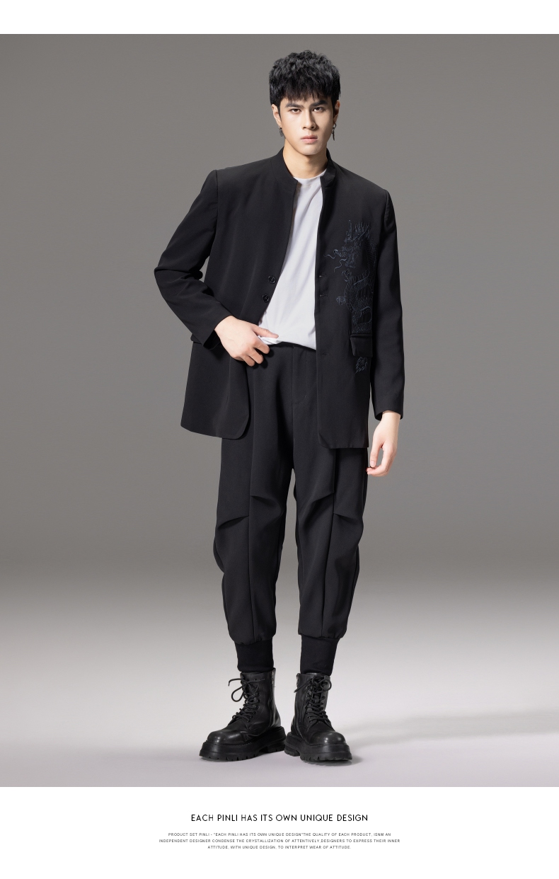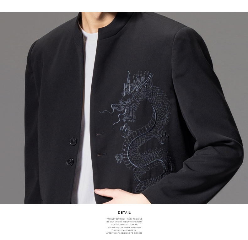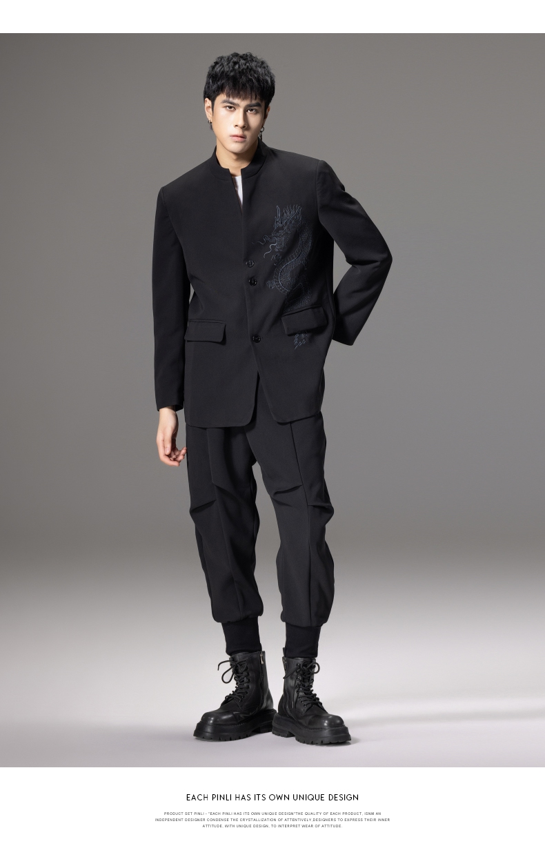 PINLI品立秋季新款立领新中式刺绣休闲西服男士国潮西装外套B243106027
