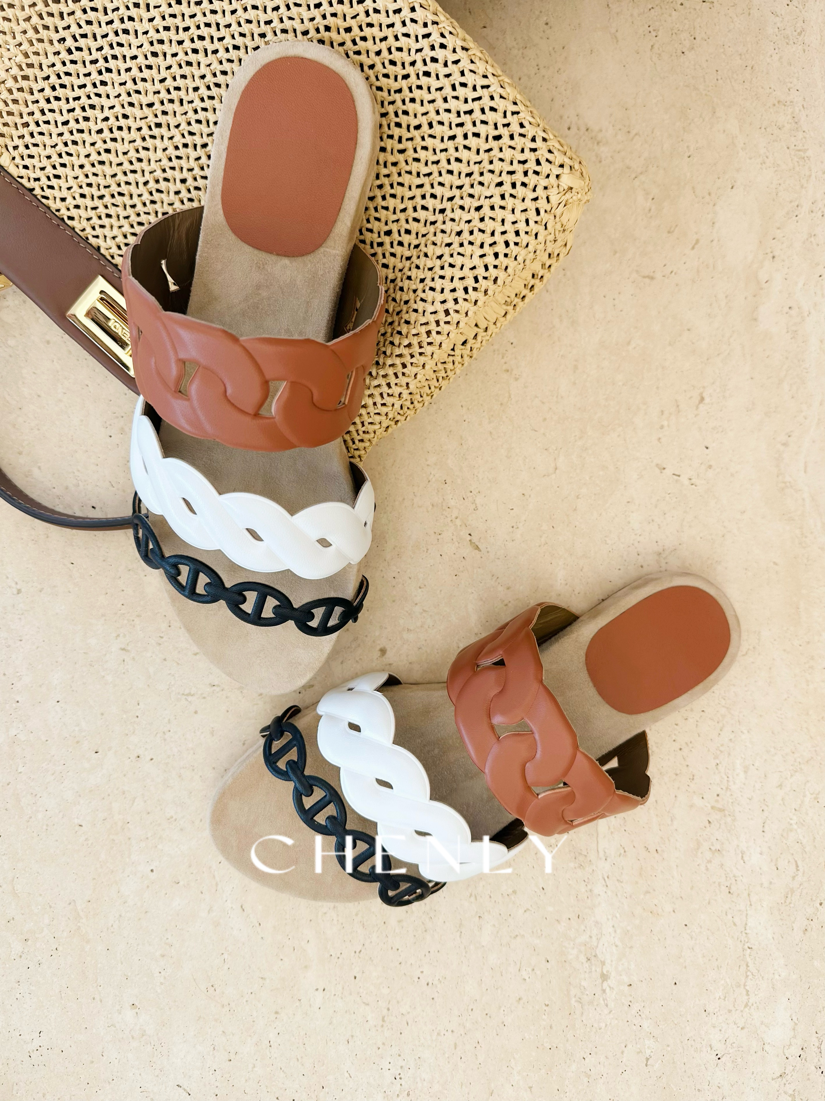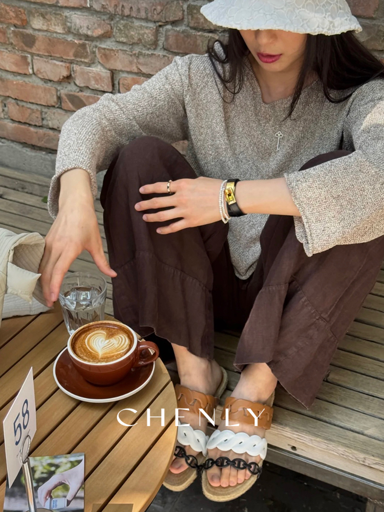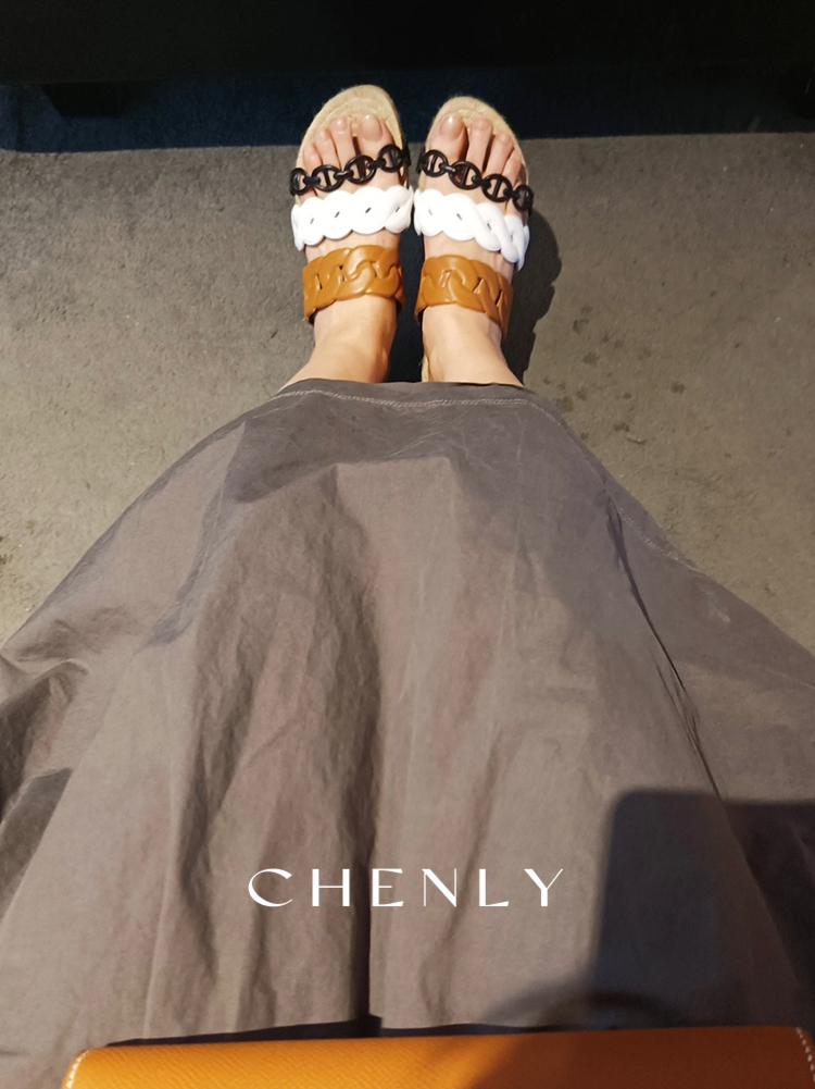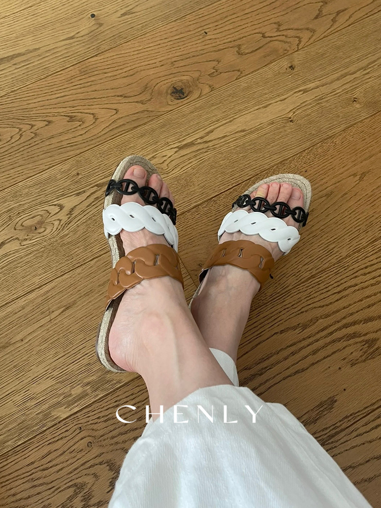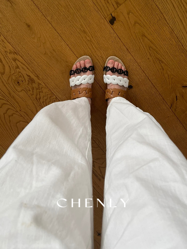不退不换!尘衣|25春夏猪鼻撞色链条拖鞋