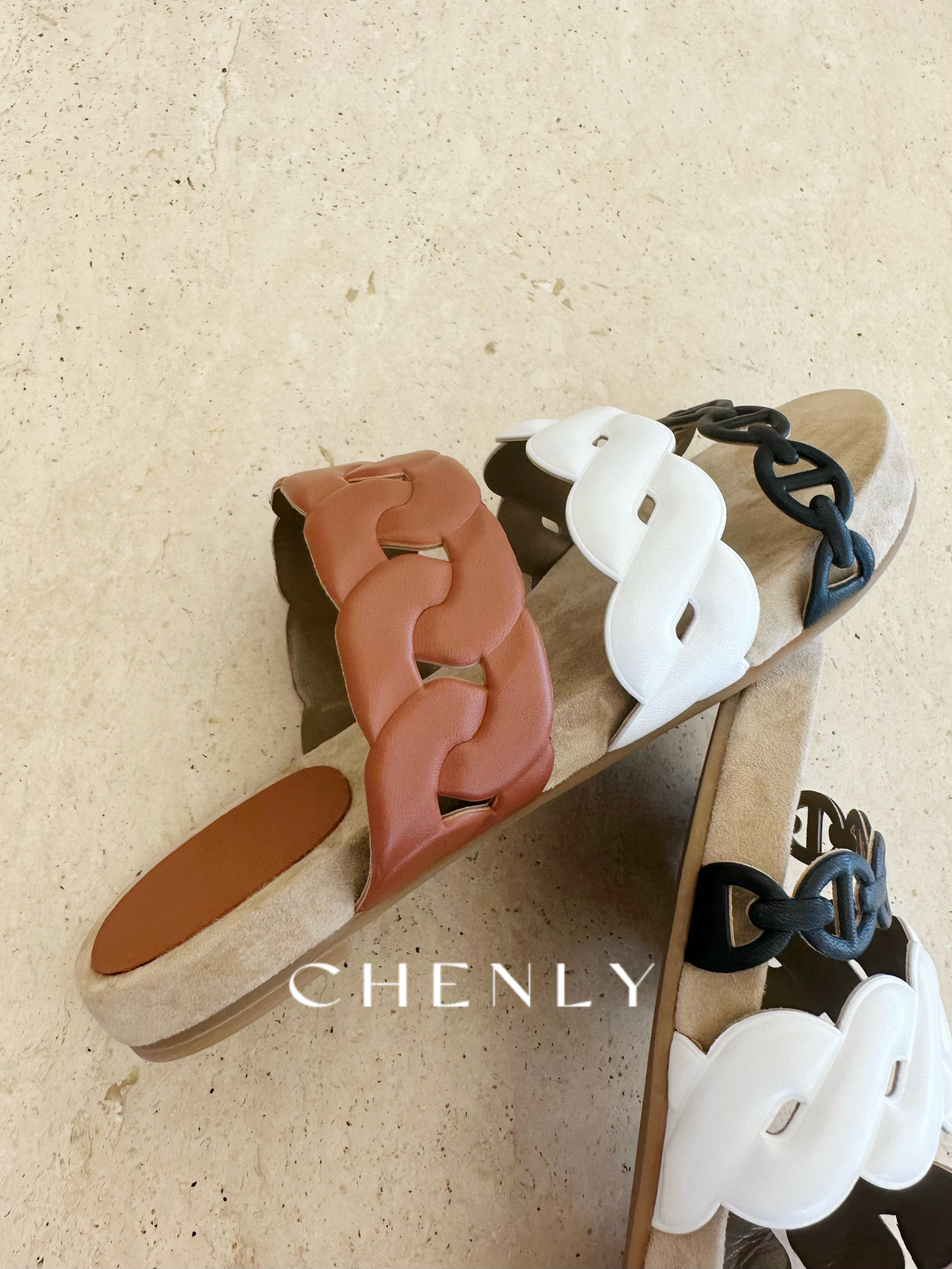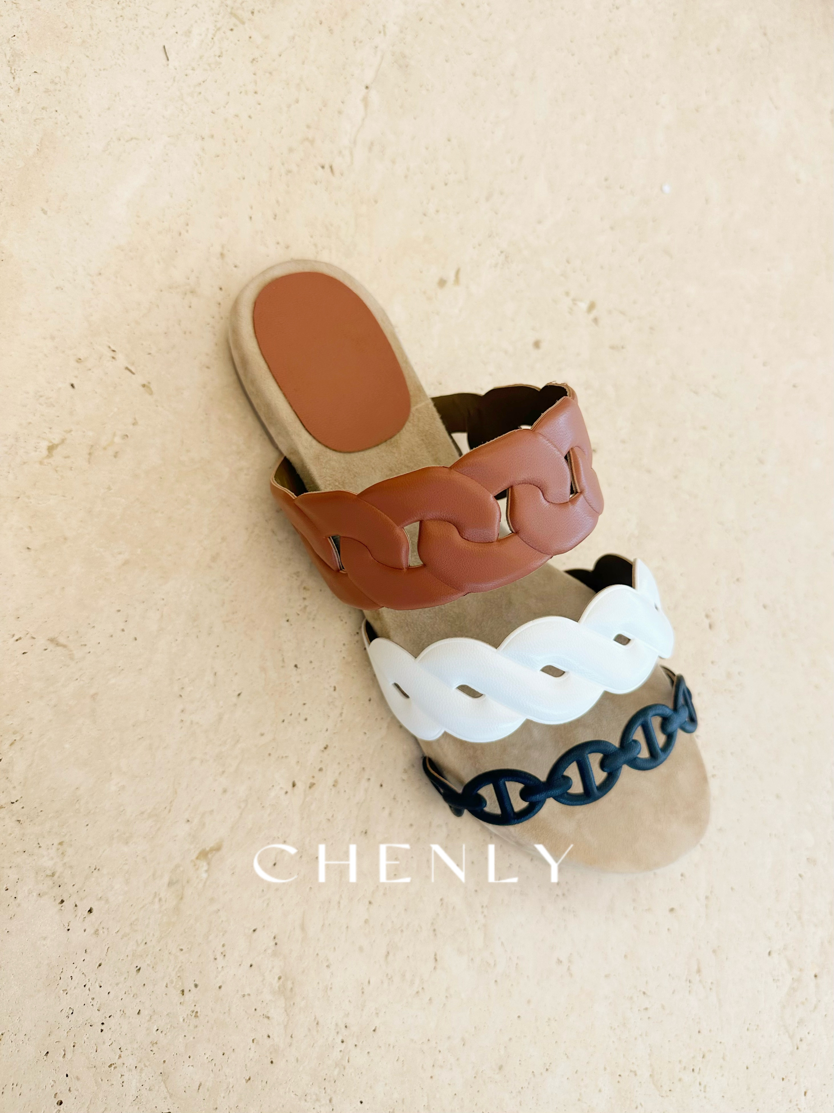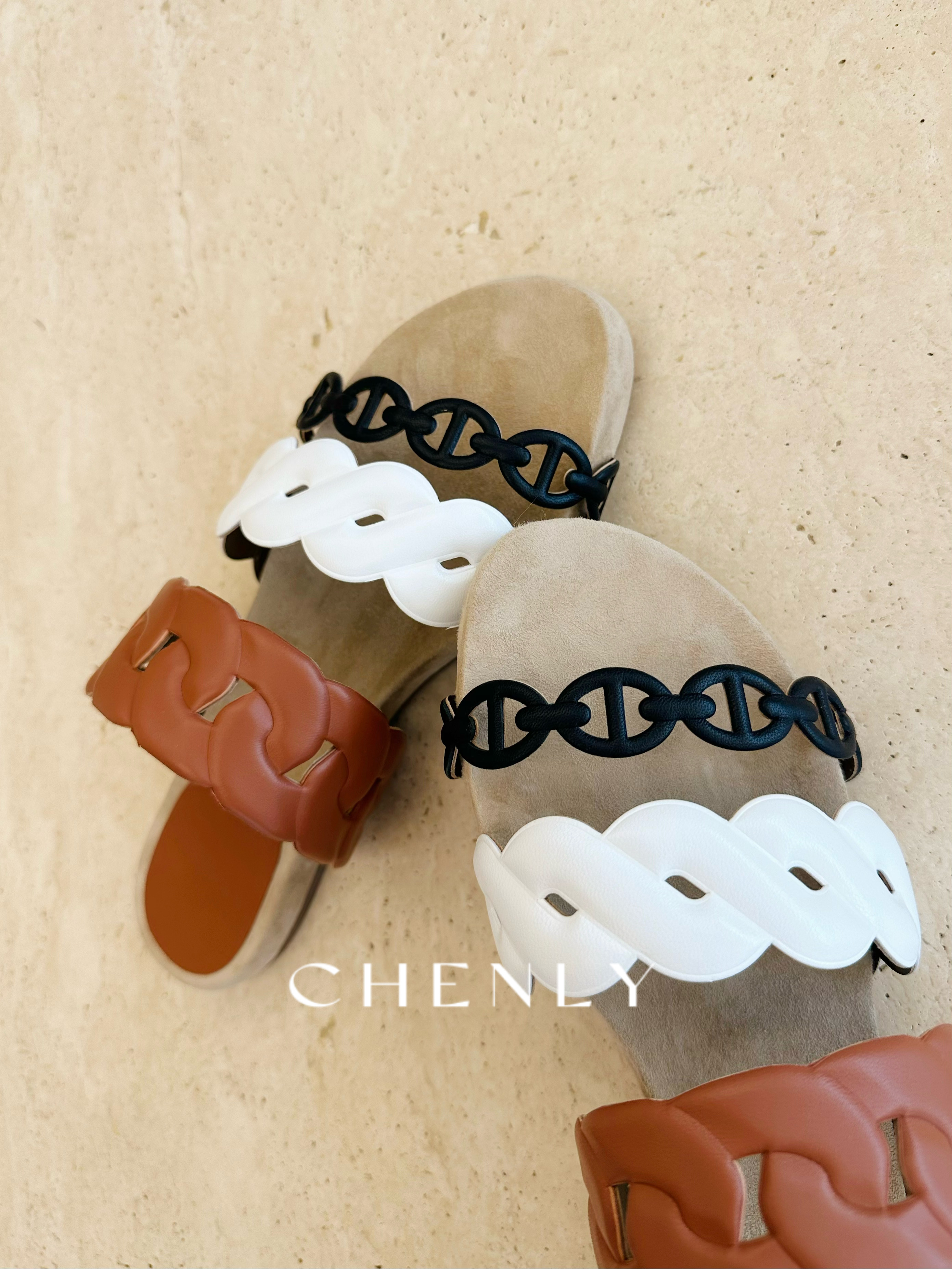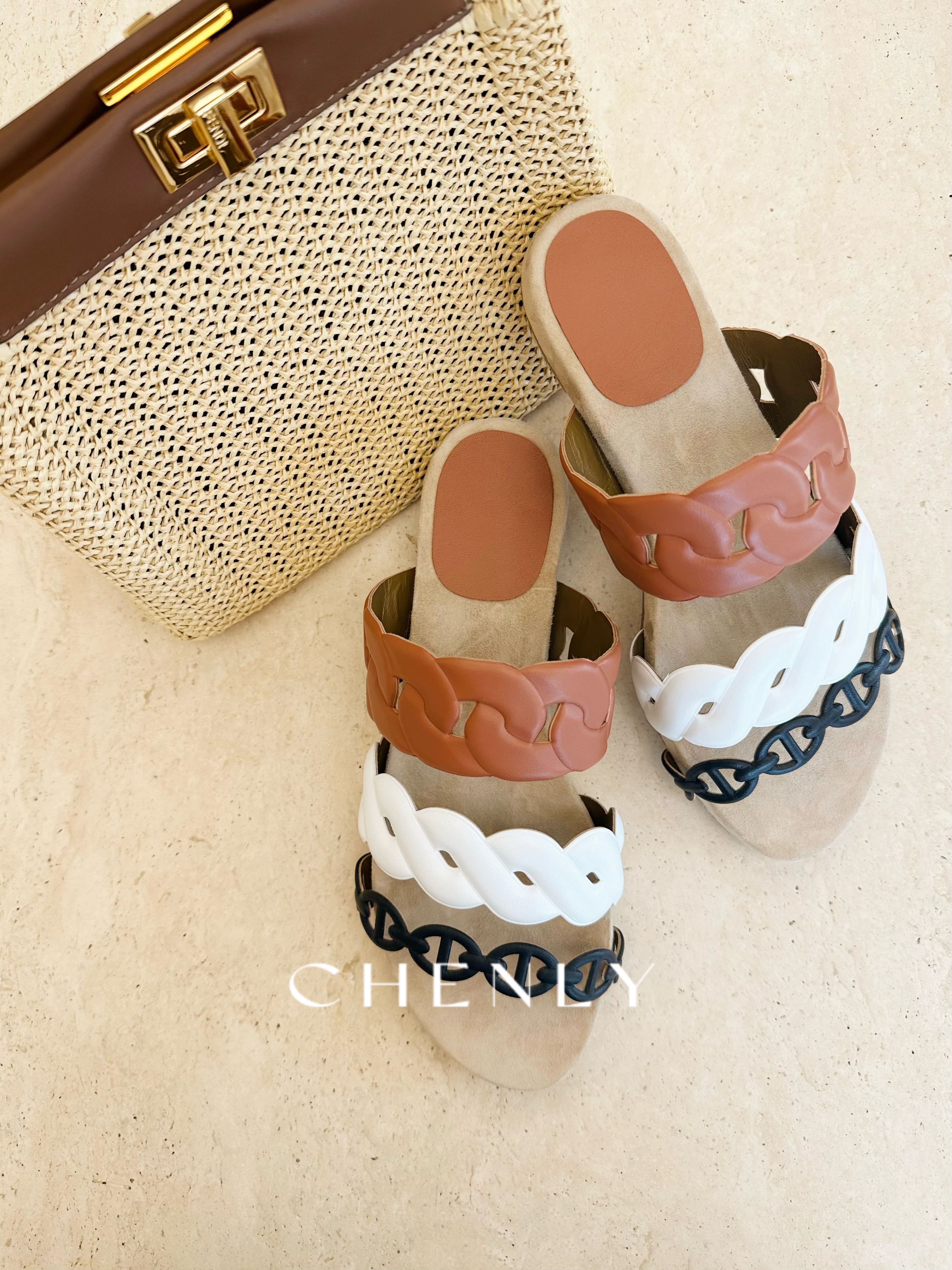 不退不换!尘衣|25春夏猪鼻撞色链条拖鞋