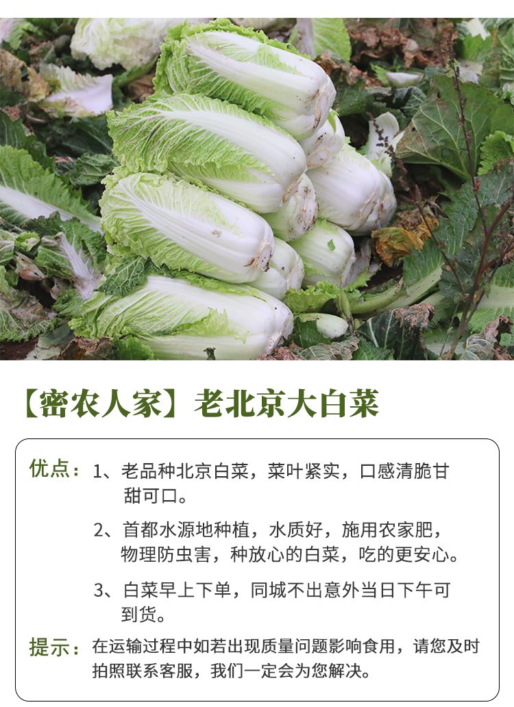 【包邮】老北京新三号大白菜 脆嫩微甜 生态种植 新鲜蔬菜绿叶菜腌酸菜 6斤