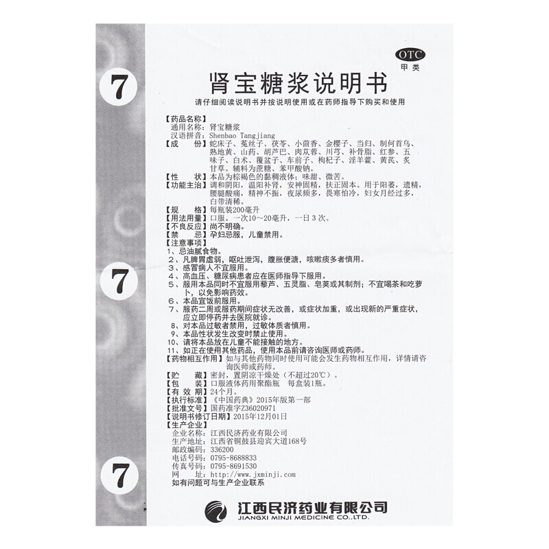 江西民济 肾宝糖浆 200ml/瓶调和阴阳 温阳补肾 腰腿酸痛畏寒怕冷