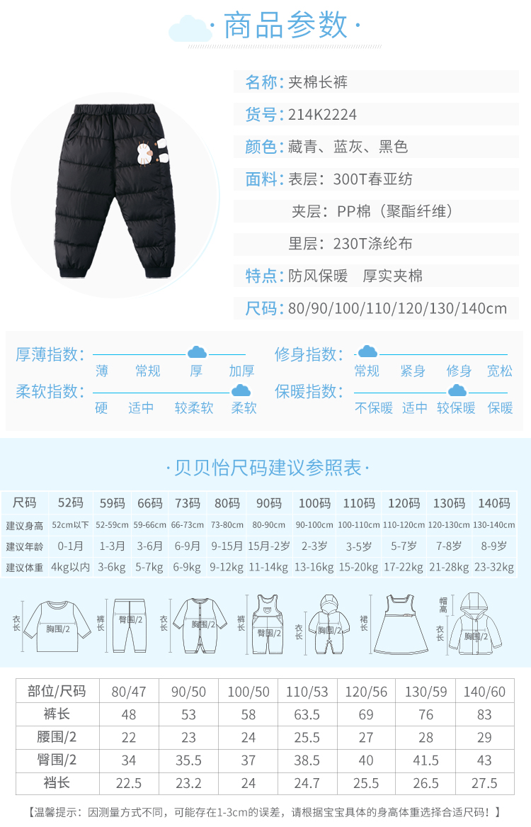贝贝怡加厚保暖宝宝休闲棉裤男童个性夹棉洋气外穿棉裤新款214K2224