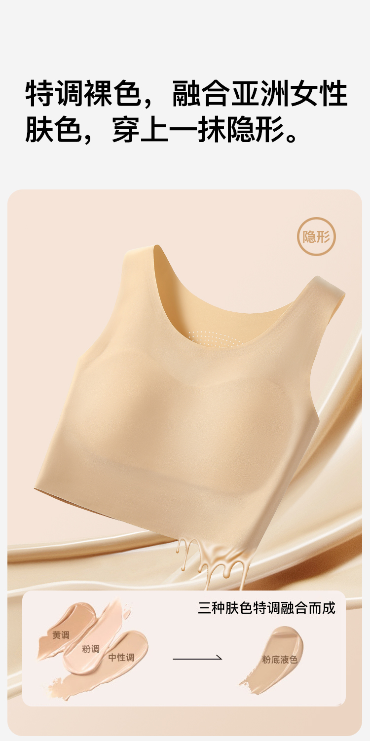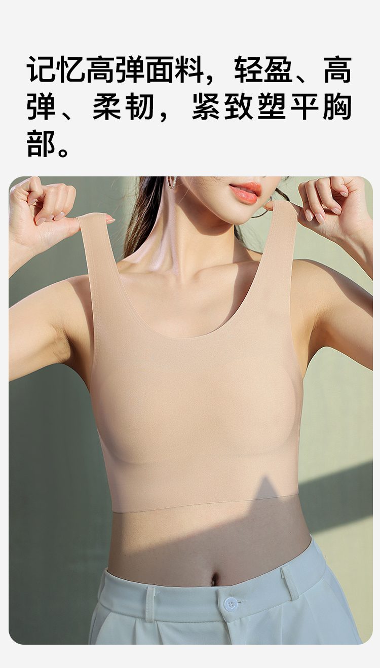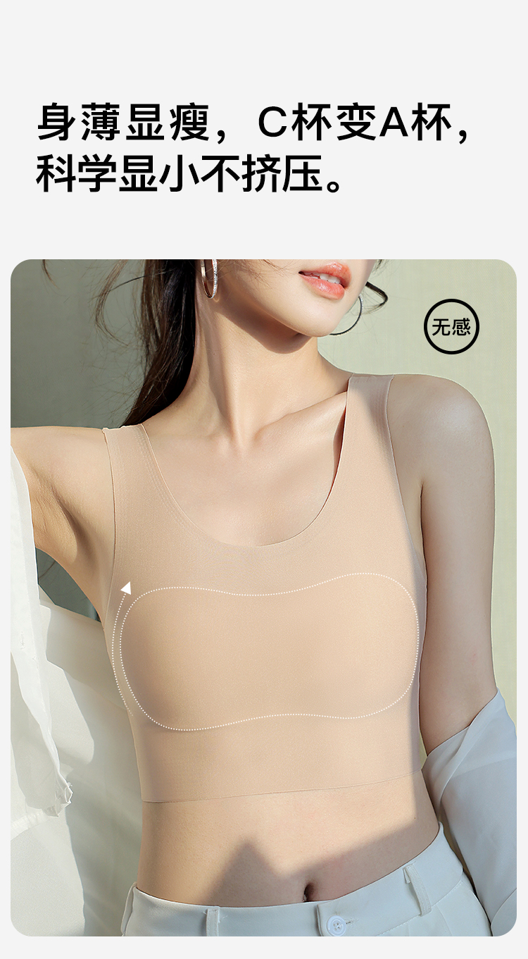 【粉底液无痕隐形】束胸显小纸片内衣女一体背心式透气美背文胸裸意无痕