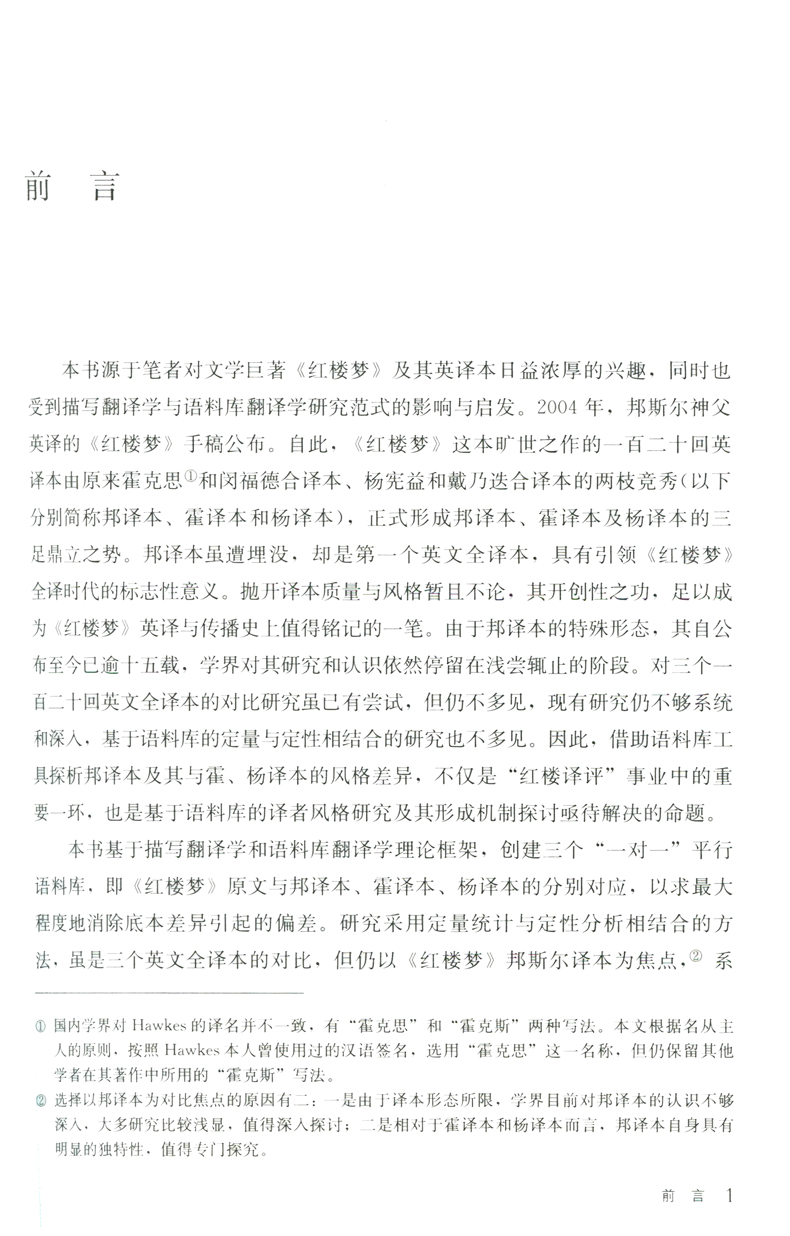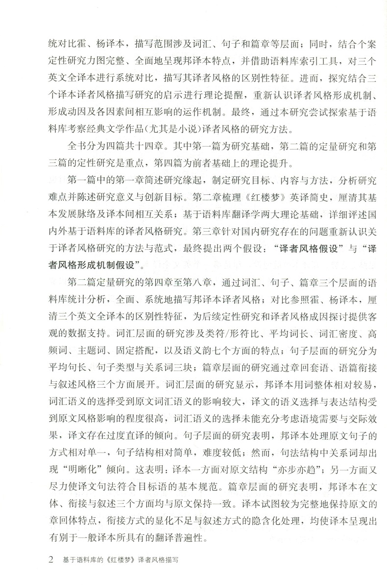 基于语料库的《红楼梦》译者风格描写 以邦斯尔、霍克思和闵福德、杨宪益夫妇译本为例 翻译学研究
