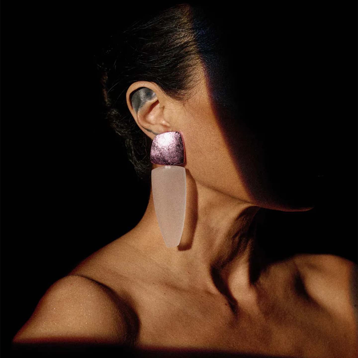订购8周到|MONIES-Joa-粉色 相思木 亚克力 金箔 珠宝级合金镀银 耳夹(无需耳洞)[丹麦设计师]