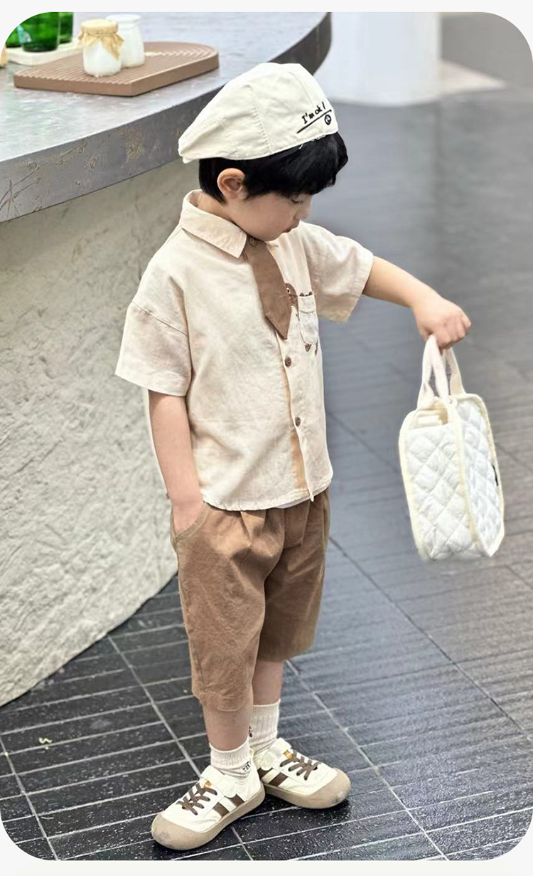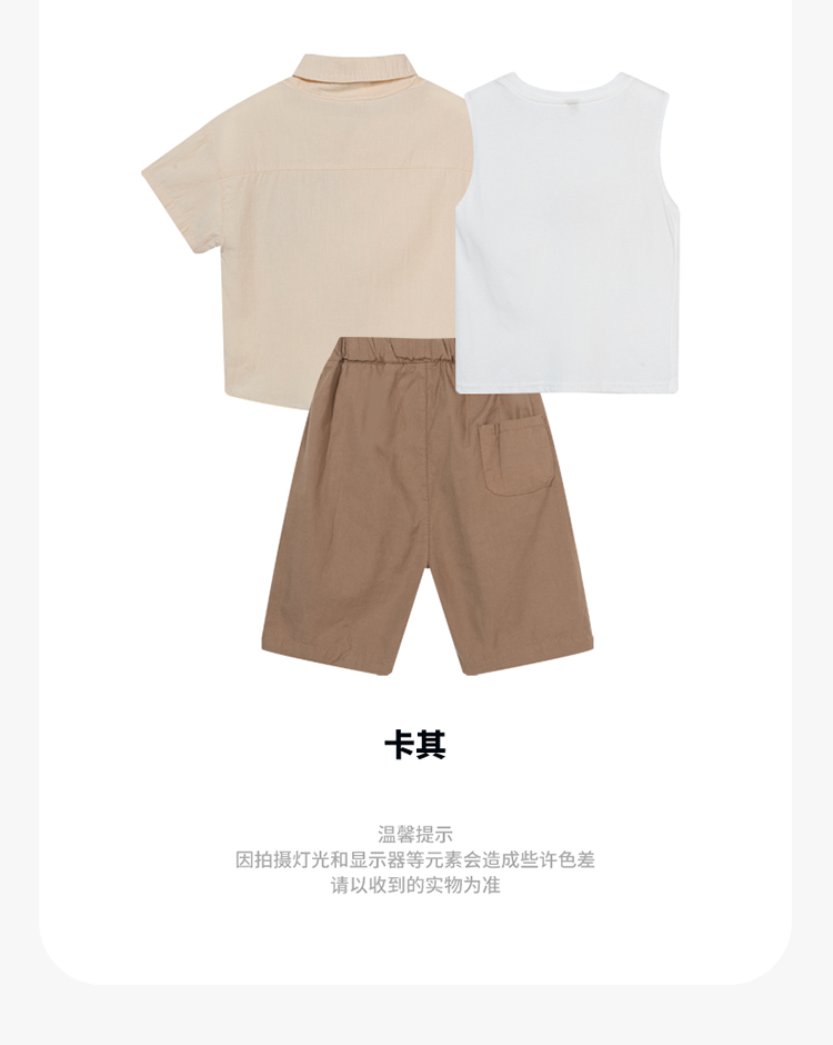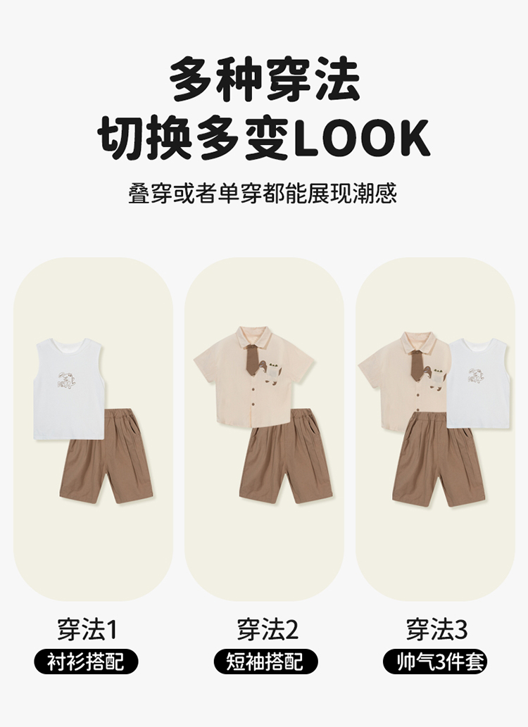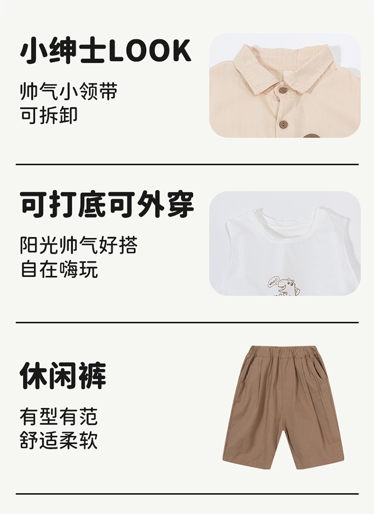 贝贝怡童装男童纯棉套装2024夏季新款时尚儿童t恤五分裤三件套夏ZB2DT090