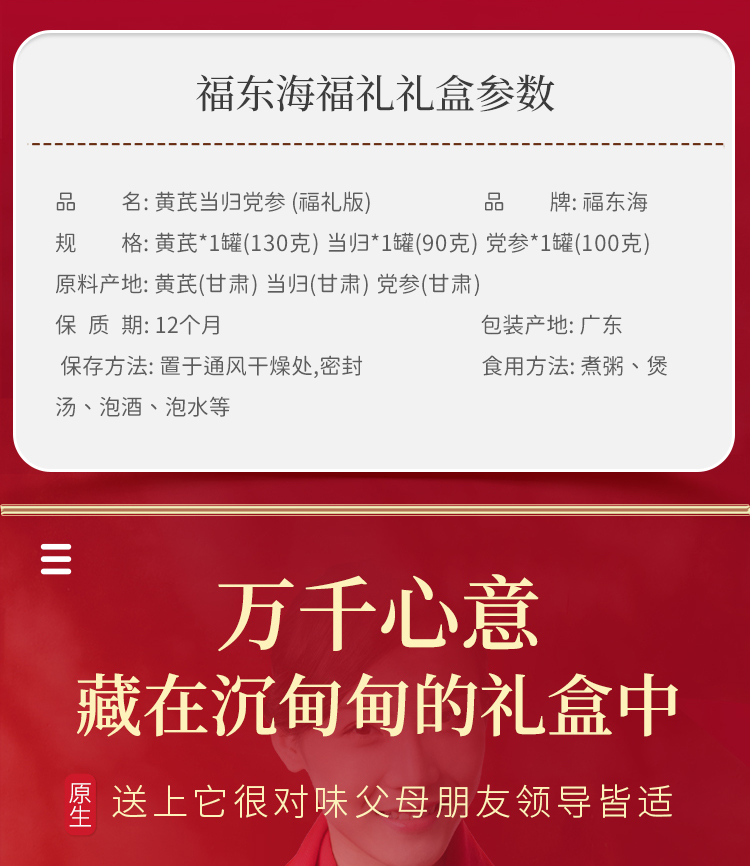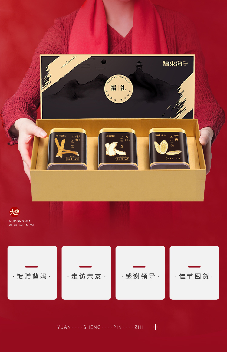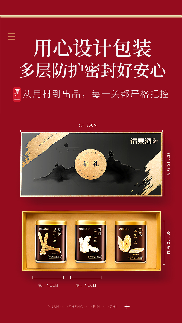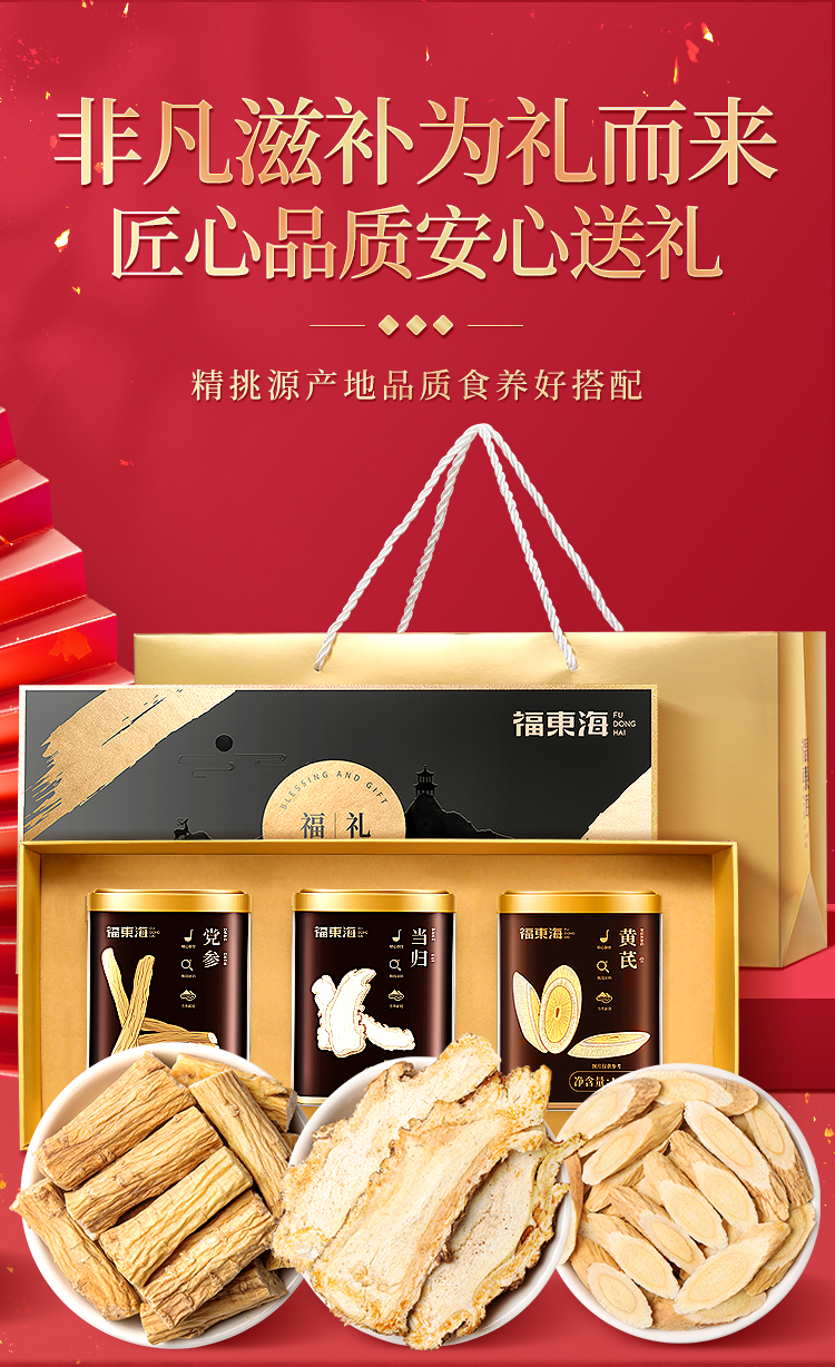 【红杏林专属】福东海 黄芪+当归+党参 组合3罐共320克 煲汤材料滋补品泡水养生茶 年货节送礼