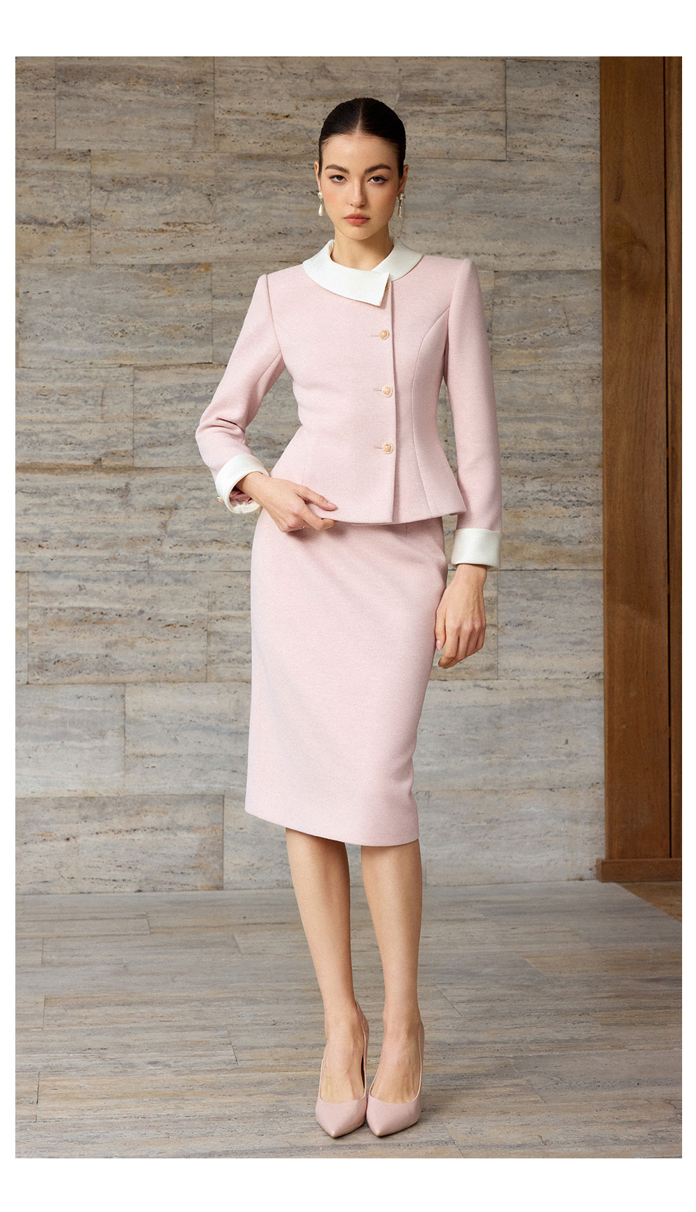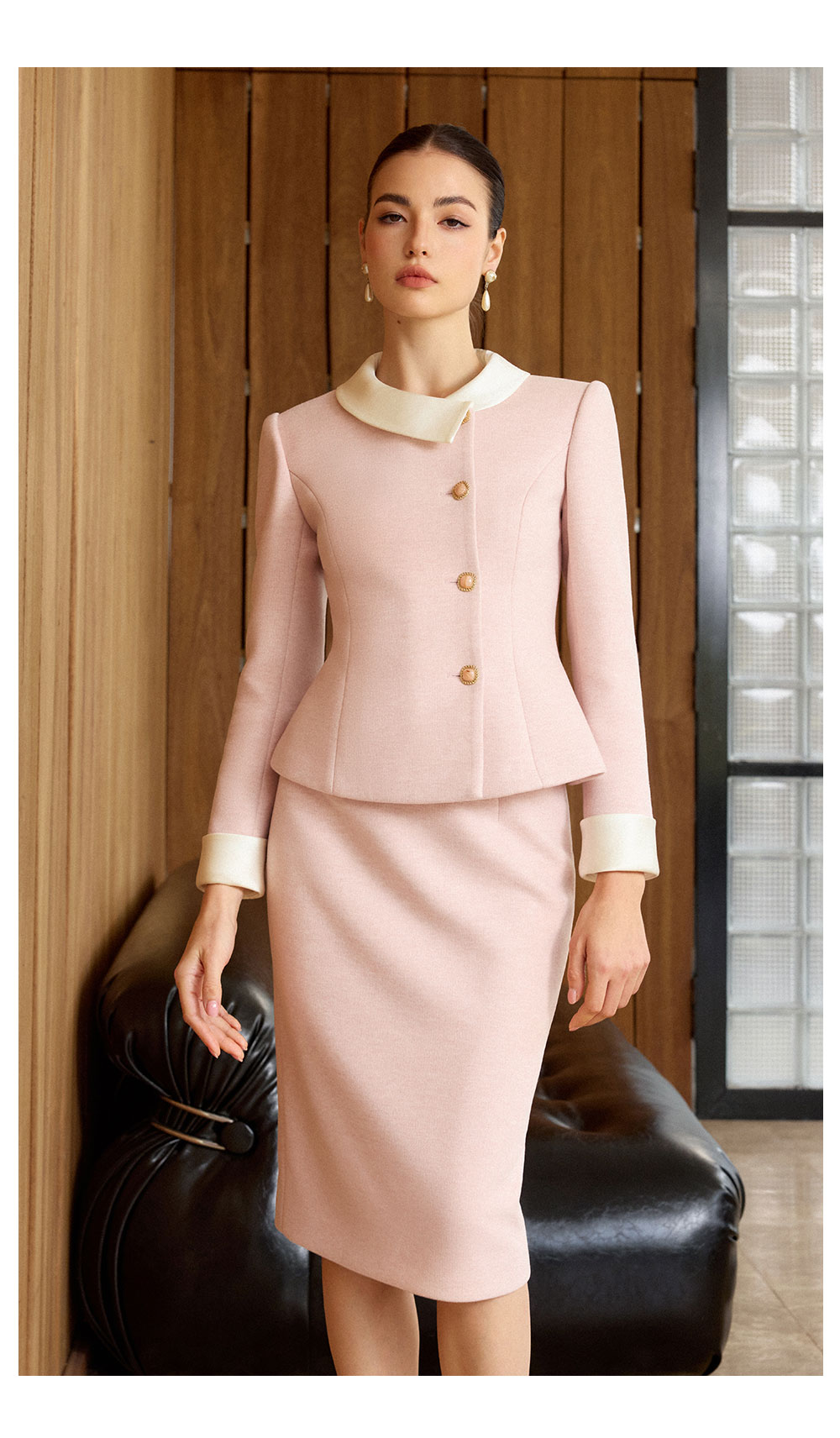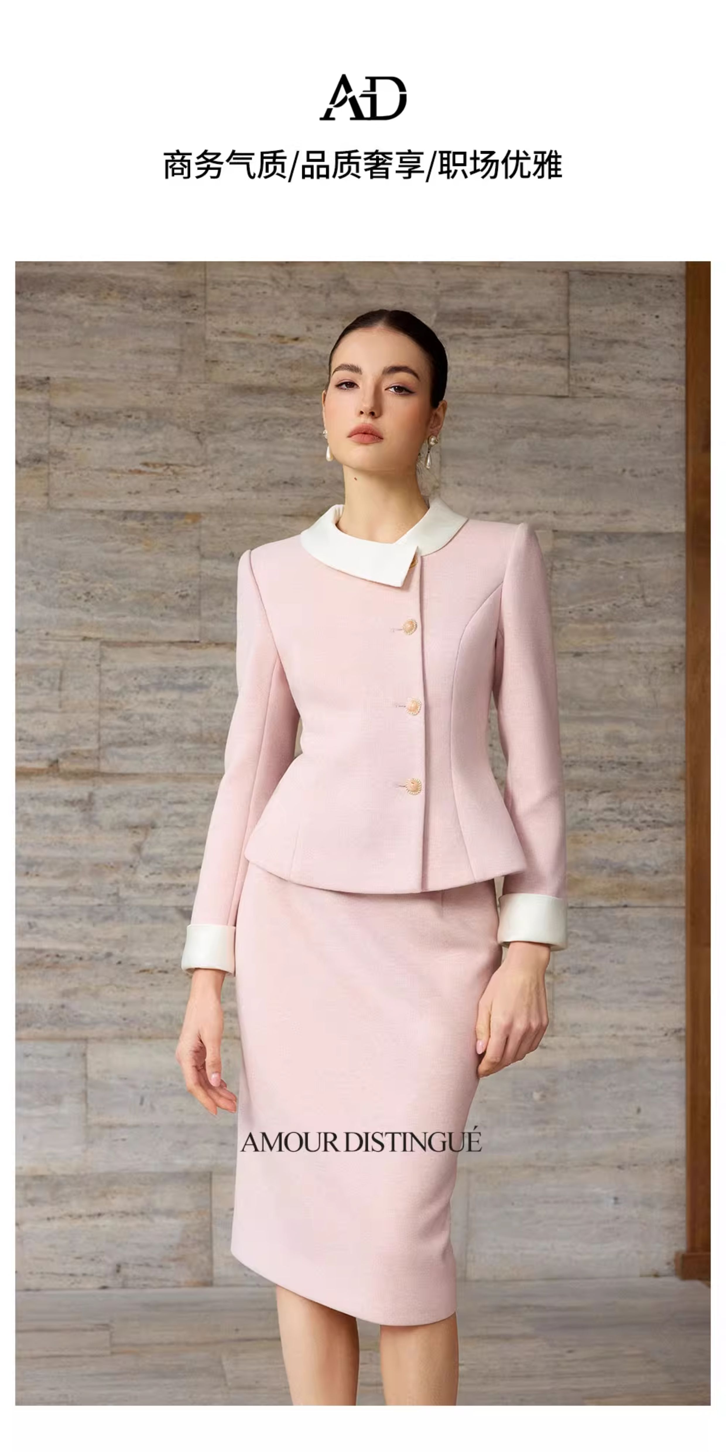 AD高级感粉色穿搭一整套女2025新款秋冬名媛小香风两件套羊毛半裙