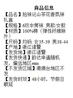 【6双中筒袜】拾袜记山茶花香氛袜礼盒 男款/女款