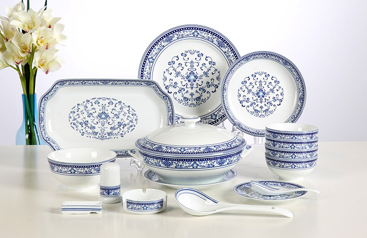 景德镇陶瓷 国瓷红叶 32头苏格蓝调