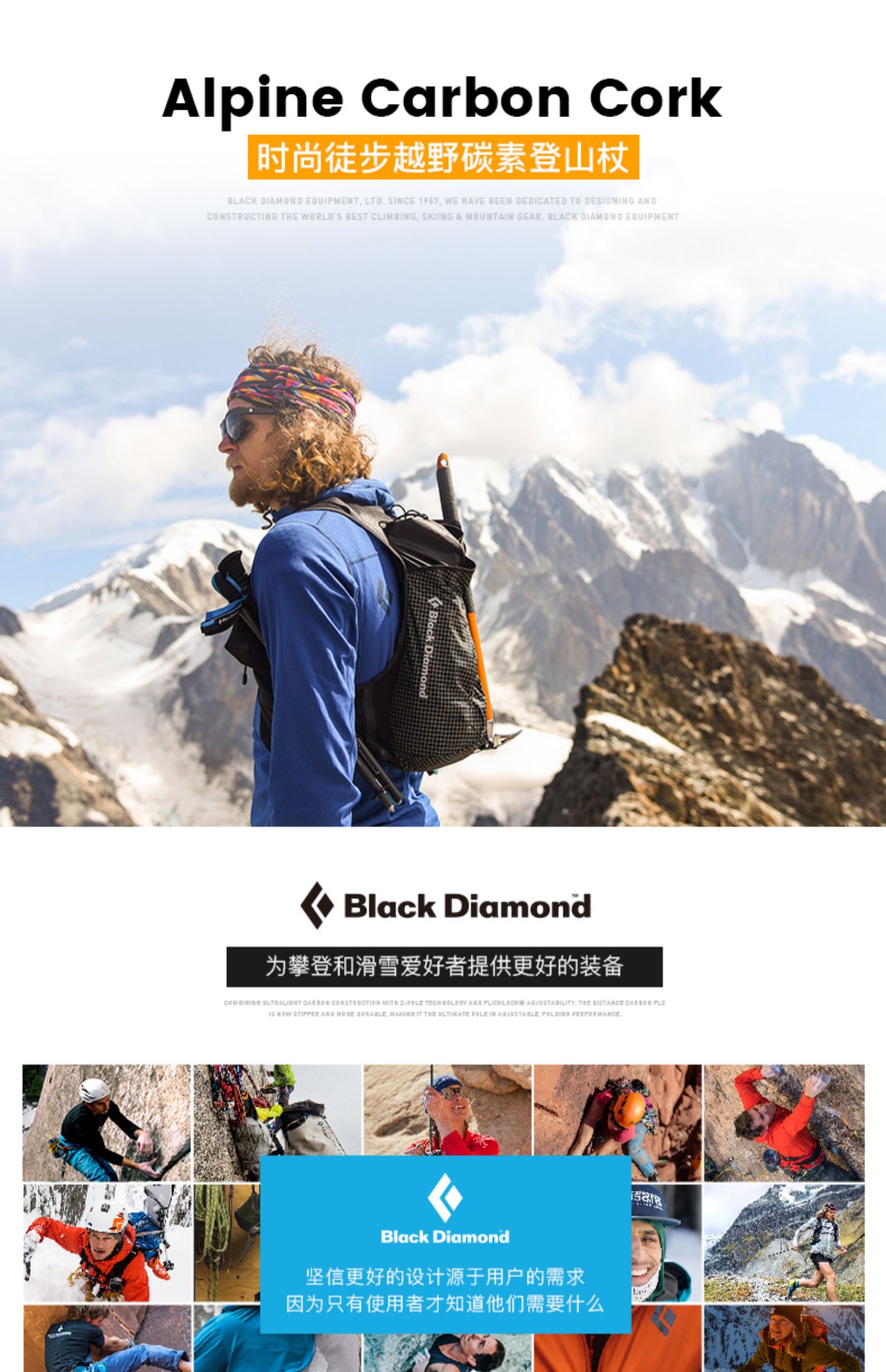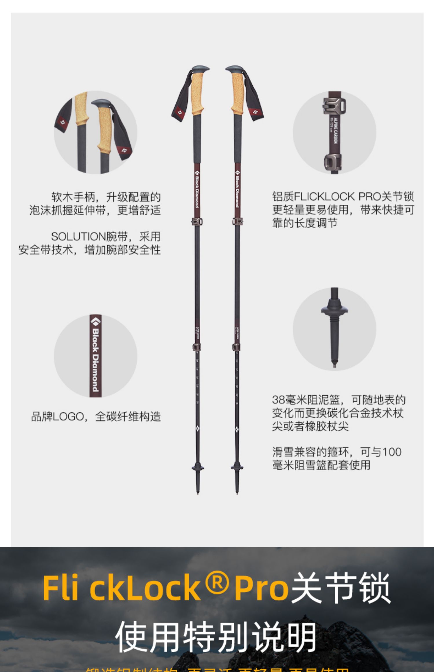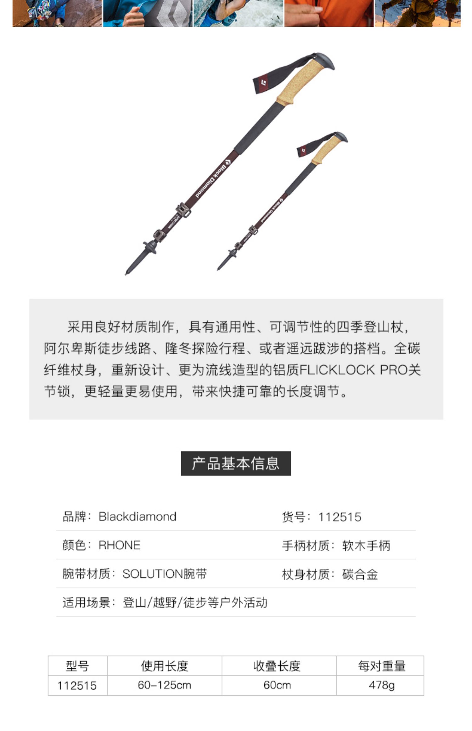 blackdiamond 黑钻 BD 112515 登山手杖户外碳素伸缩徒步杖四季爬山杖