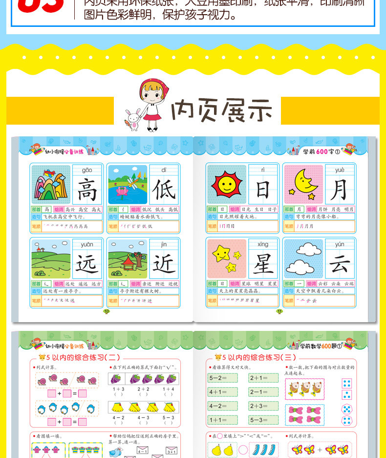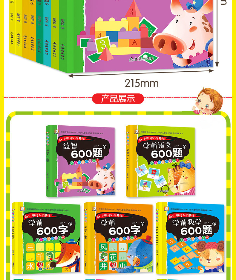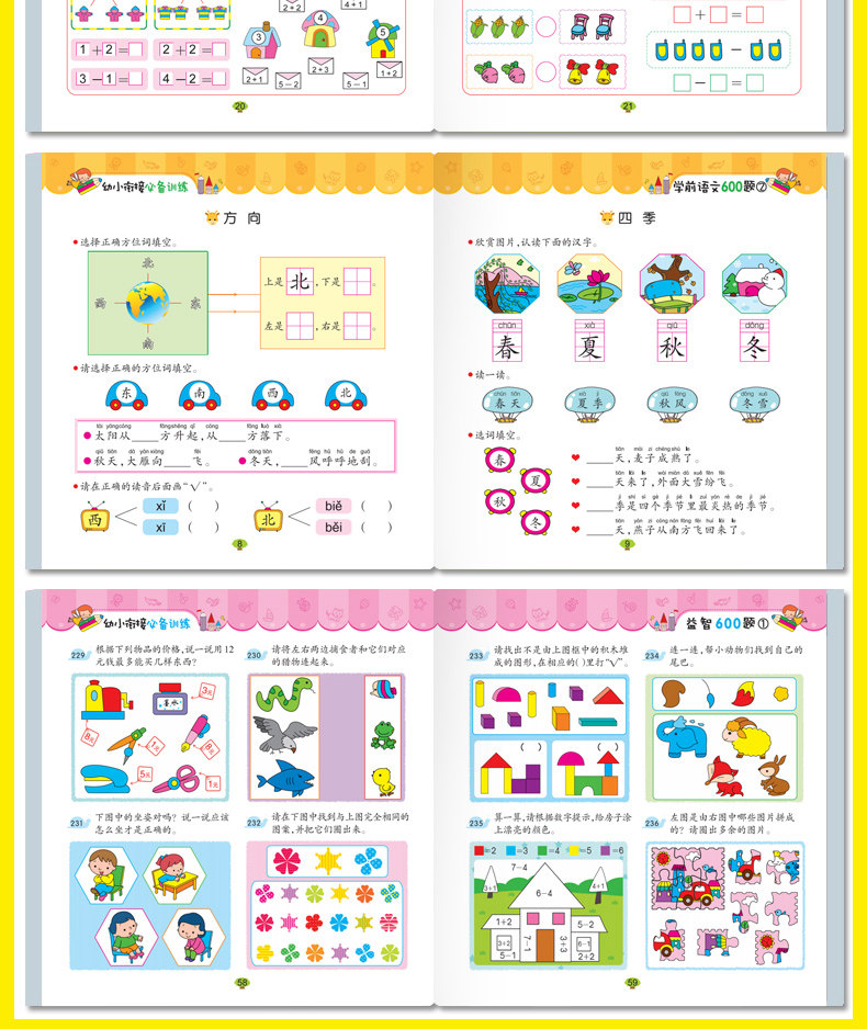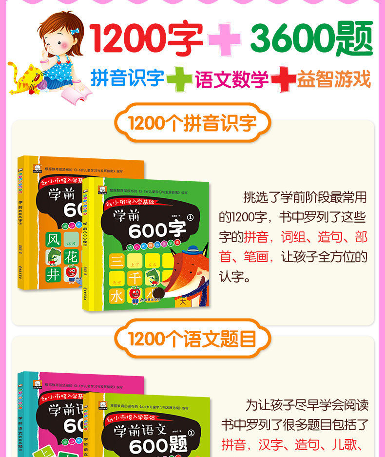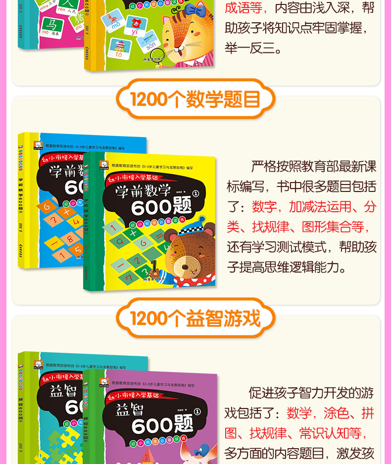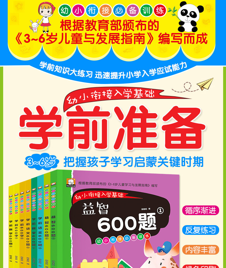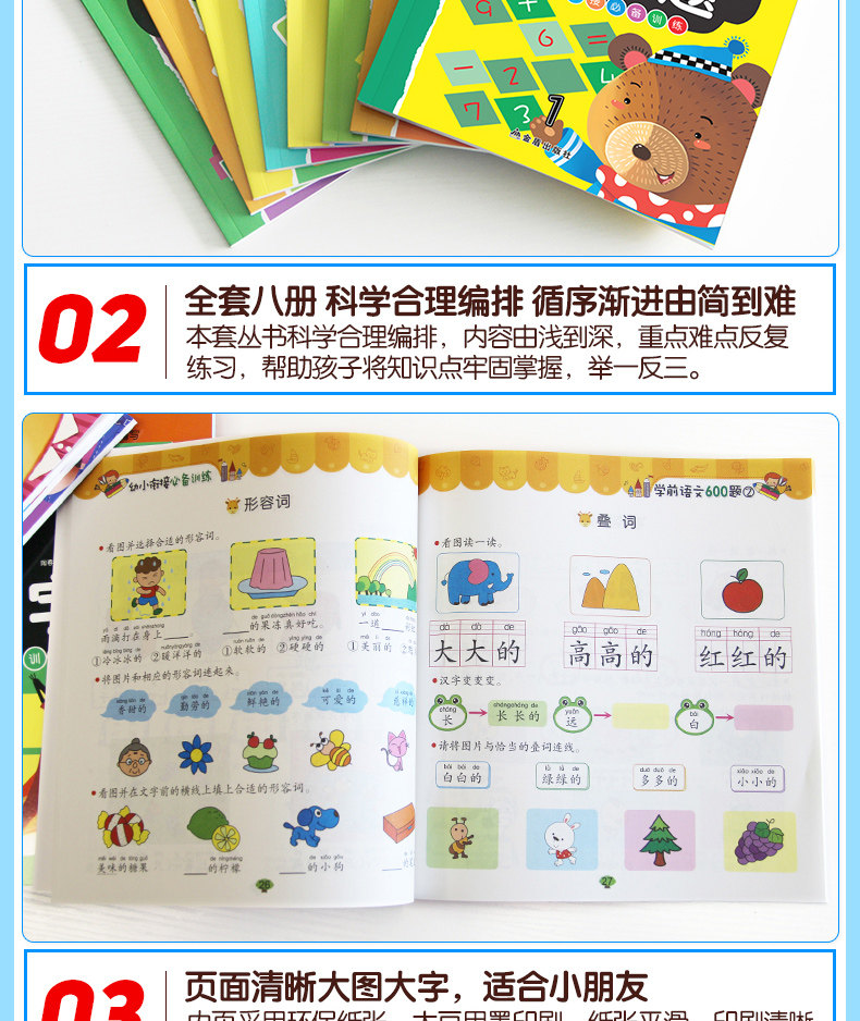 全8册幼小衔接入学基础学前准备1200字系列数学600题拼音600题学前600字智力600题3-5-6-7岁幼升小入学测试题练习册幼儿园大班教材