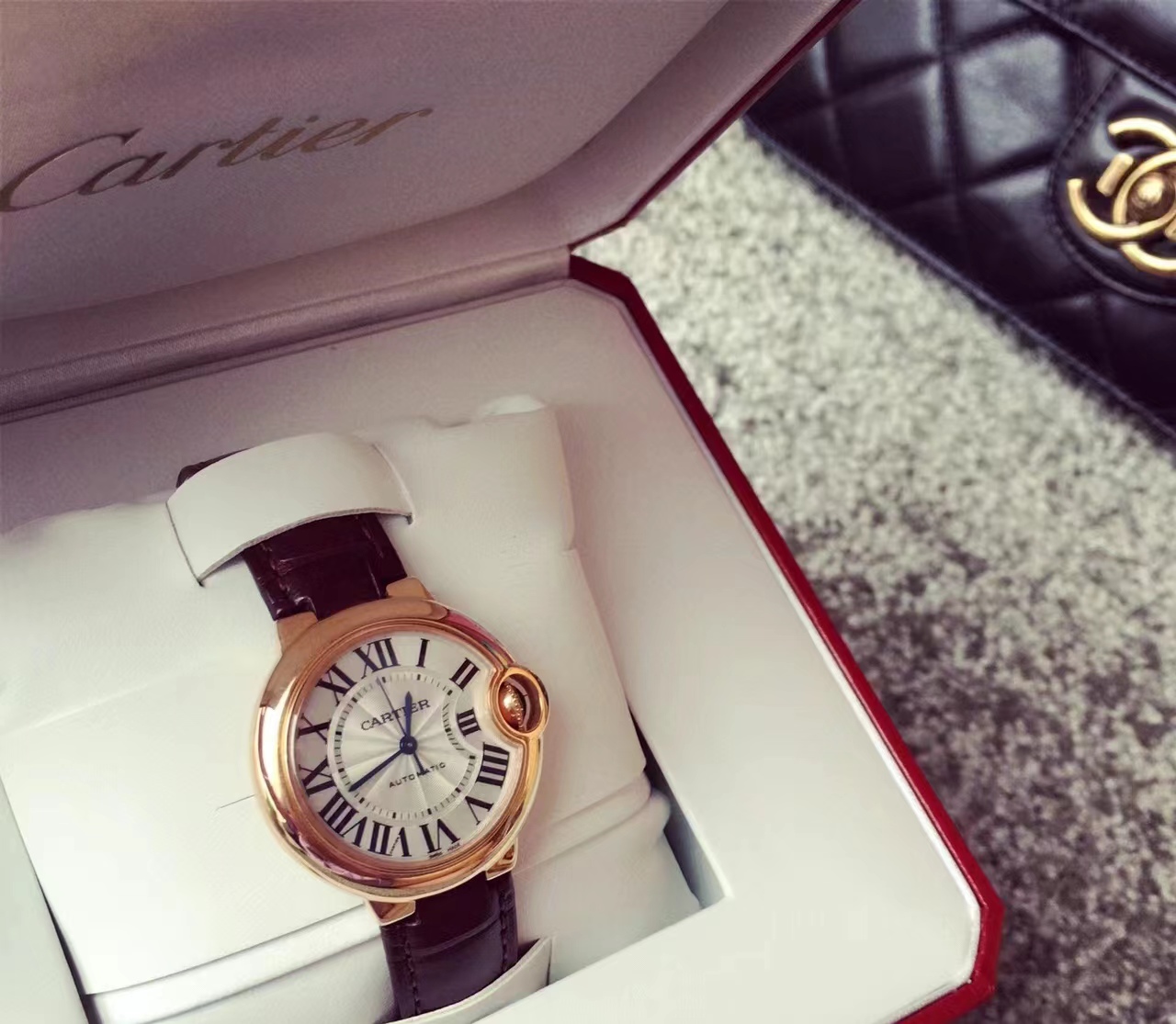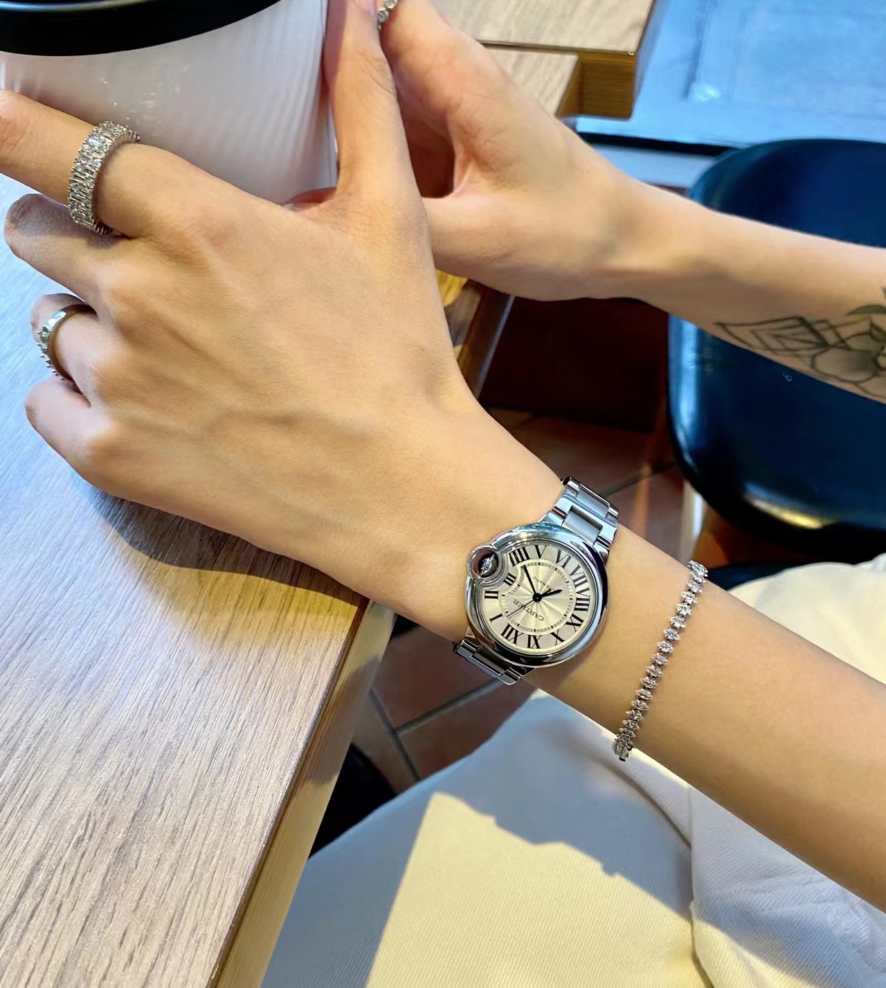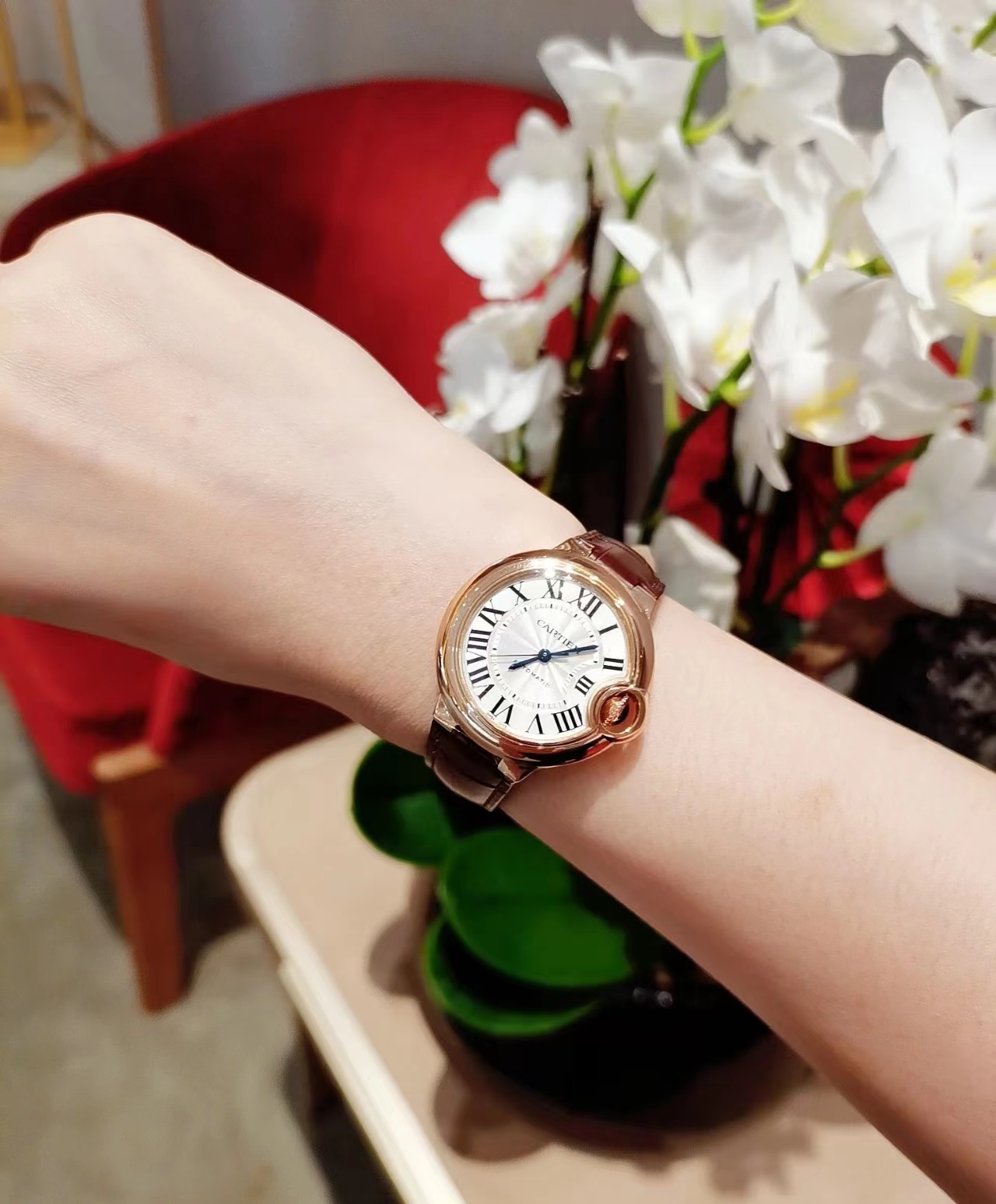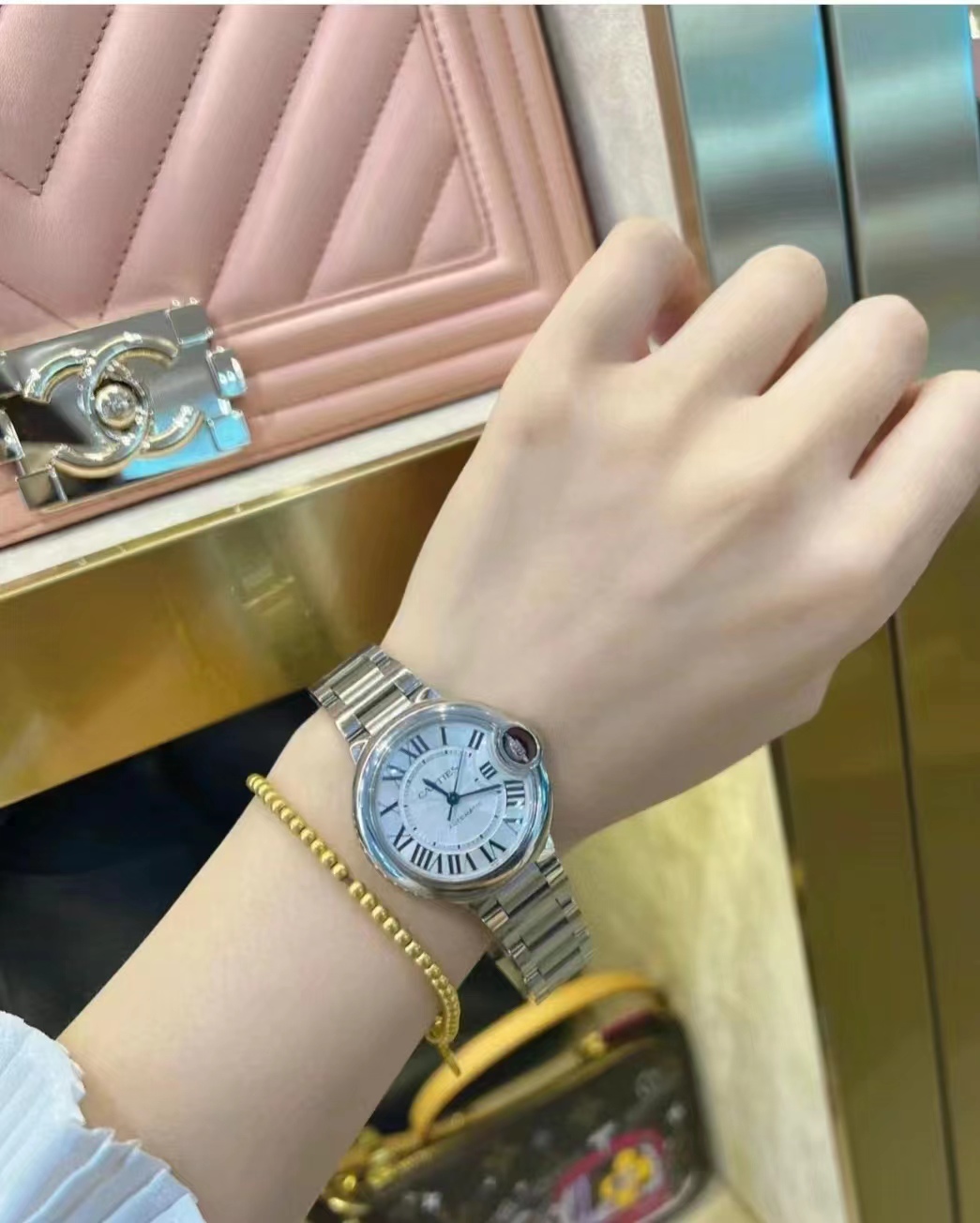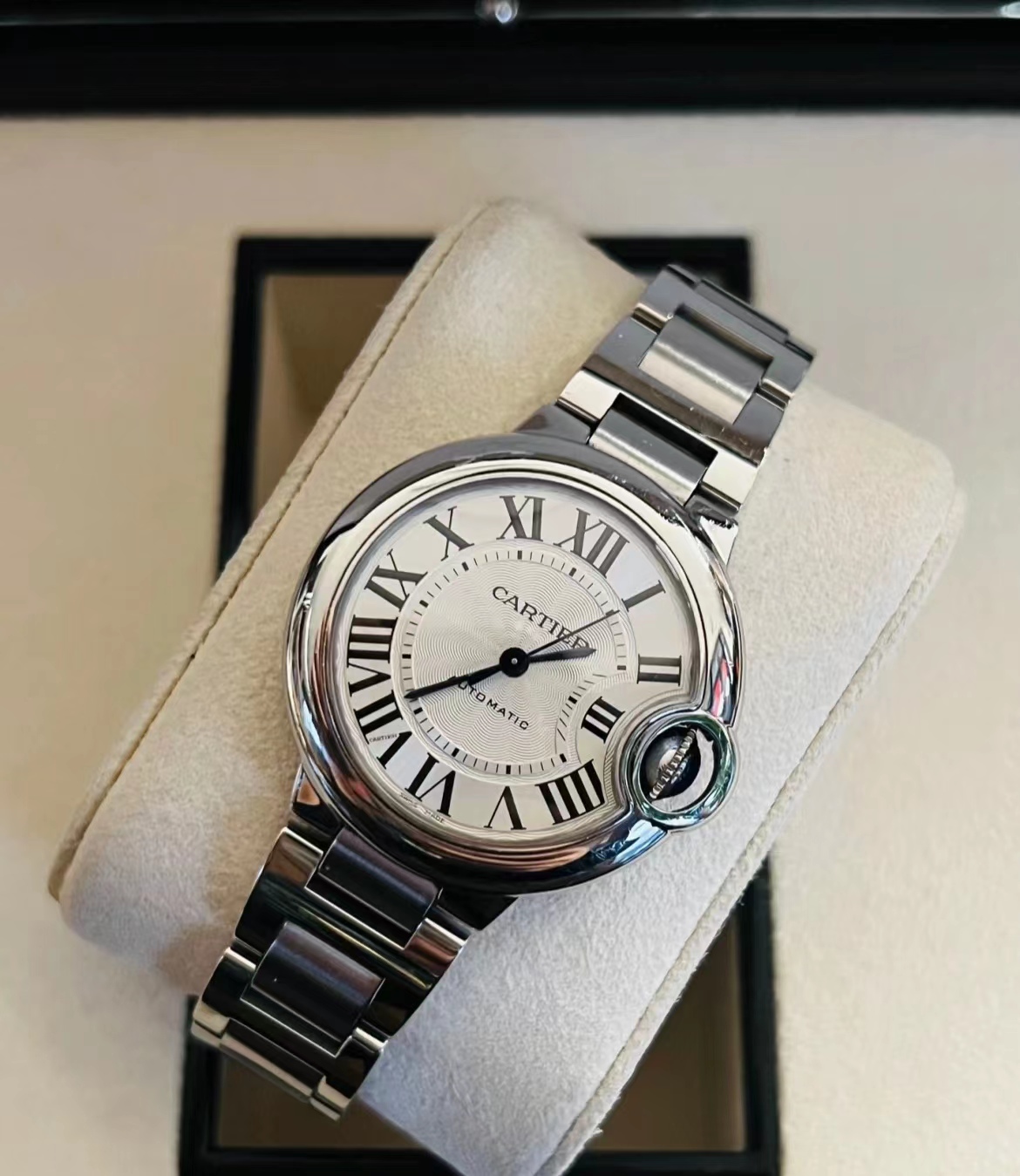 浪琴心月,越戴越喜欢,特别喜欢里面的月亮,每个月的农历15表盘就特别的圆,好特别,30.5的表盘很适合知性女性,搭任何衣服都可以的,浪漫一生,琴瑟和卡地亚蓝气球33mm心水款,如果您只选择一块手表,那一定是蓝气球,大气颜值王。