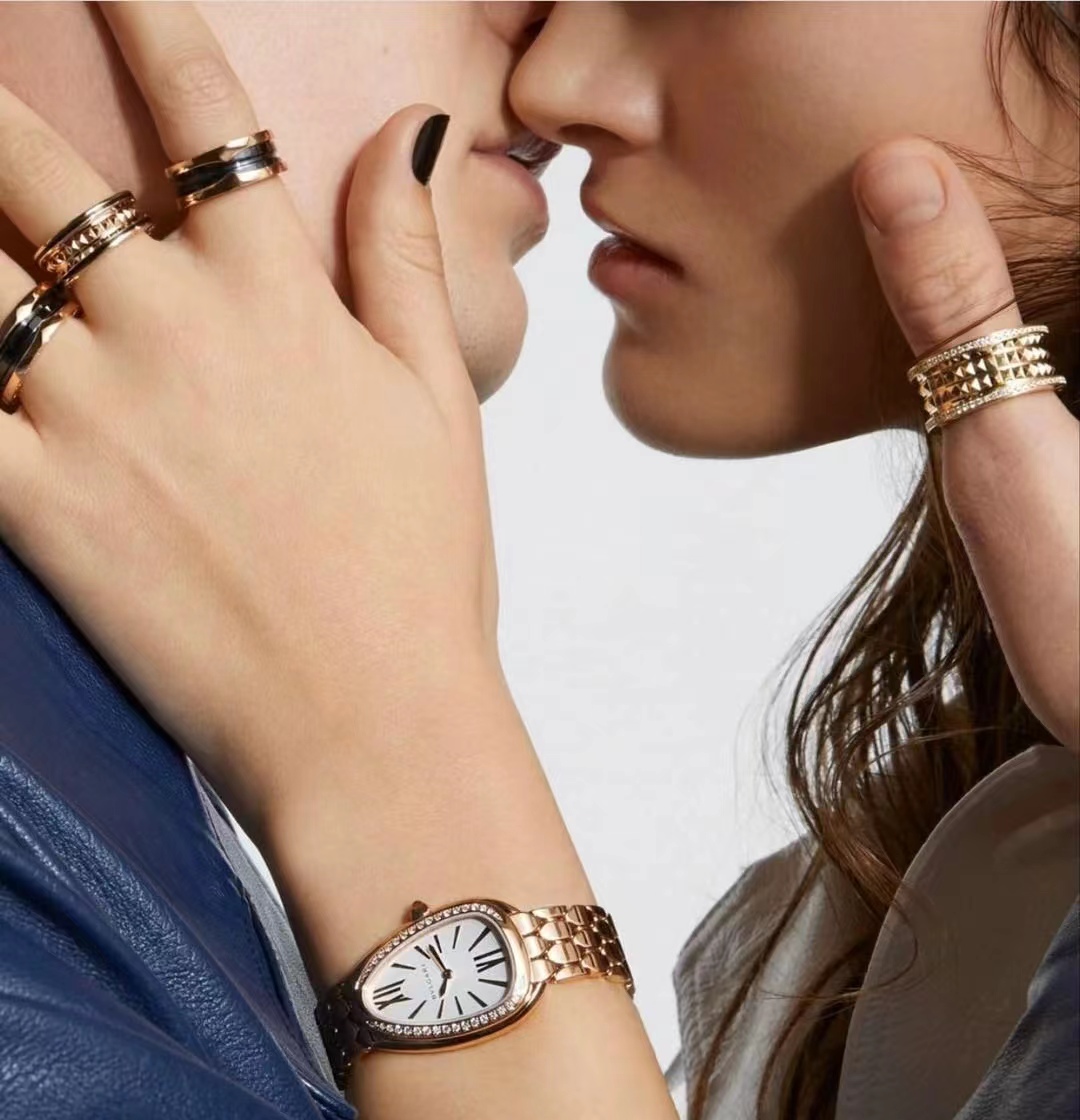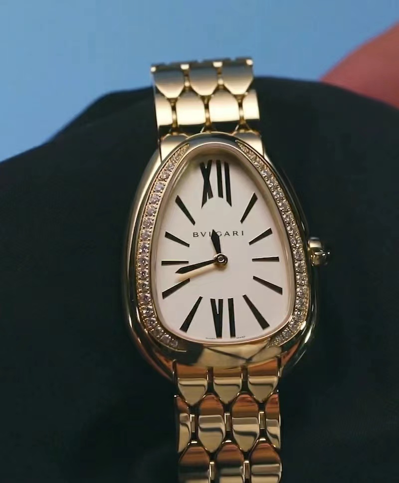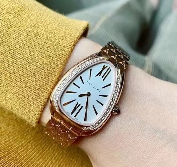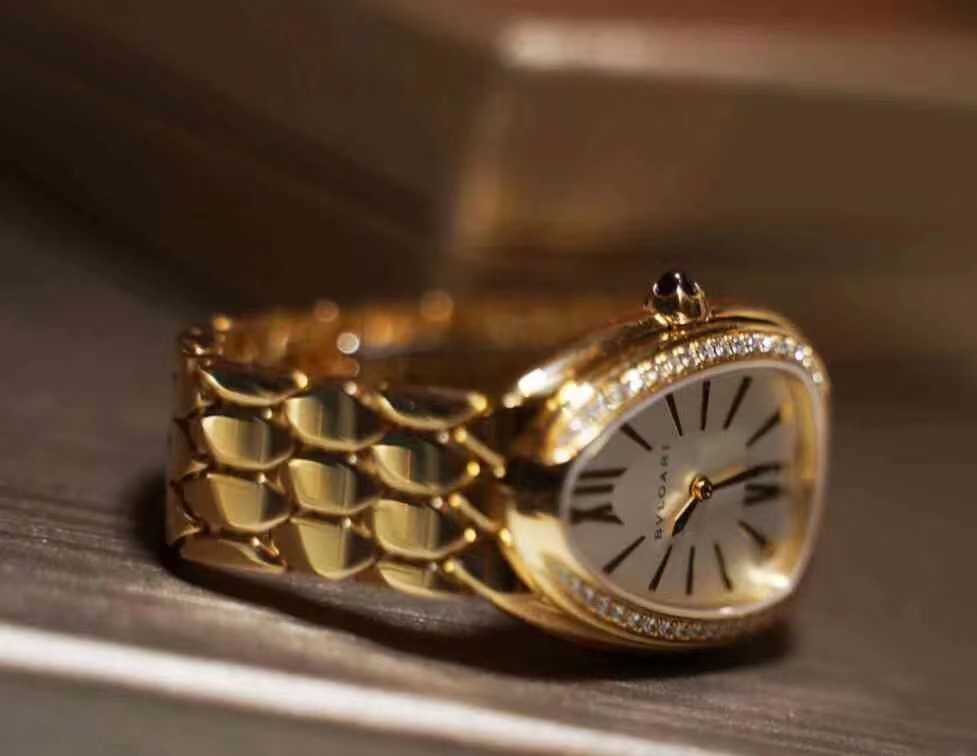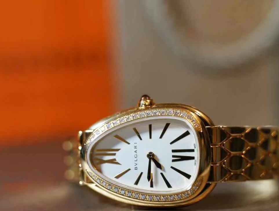 宝格丽鎏光蛇影腕表,搭载石英机芯。33毫米直径镀18K玫瑰金表壳 表圈镶嵌钻石,白银色蛋白石表盘,呈现难得一见的纤薄质感,搭配感性柔韧的表链,其六角形图案从灵蛇的鳞片中汲取设计灵感。精美的外观设计彰显高级珠宝的独特魅力。绝美!!!号称吸金招财进宝手表。