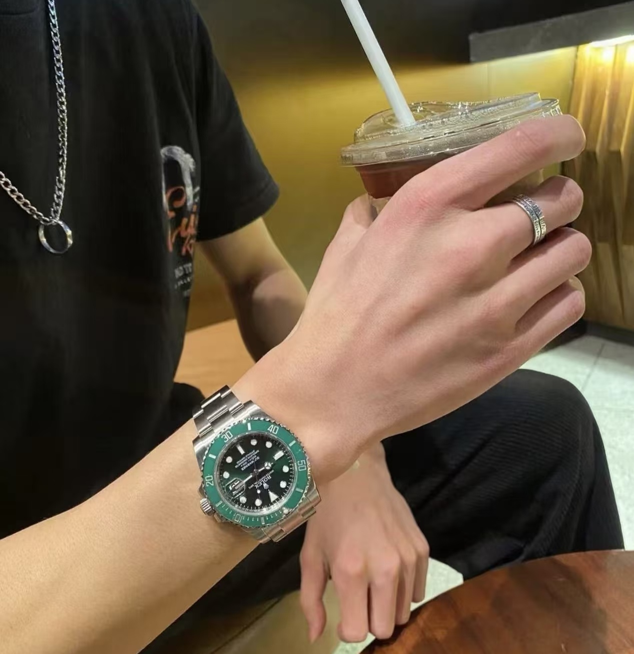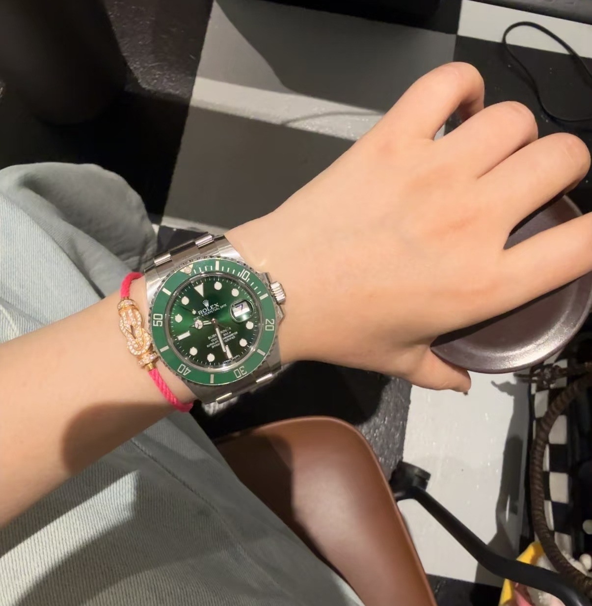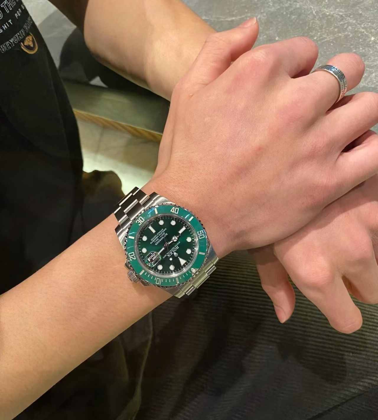 绿色陶瓷表圈+同款绿色表盘,超热门的搭配,