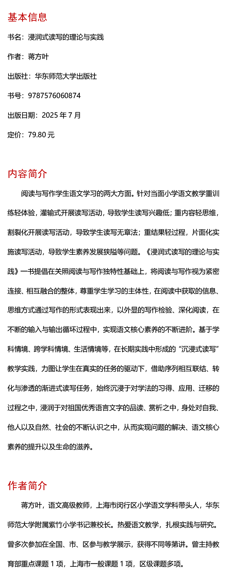 浸润式读写的理论与实践 蒋方叶 小学语文教学 阅读与写作