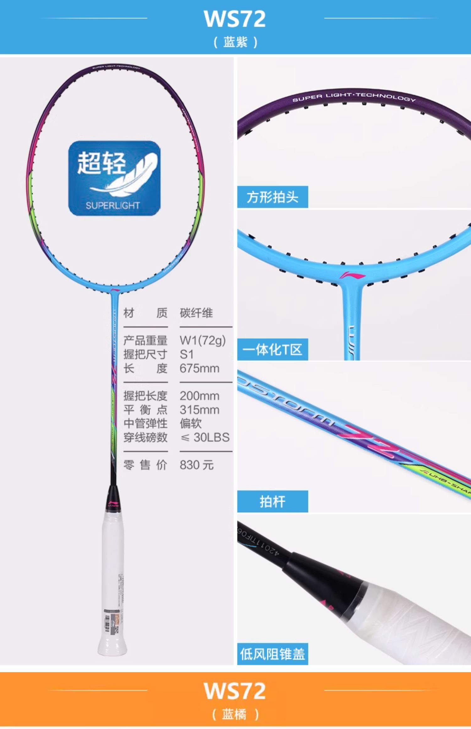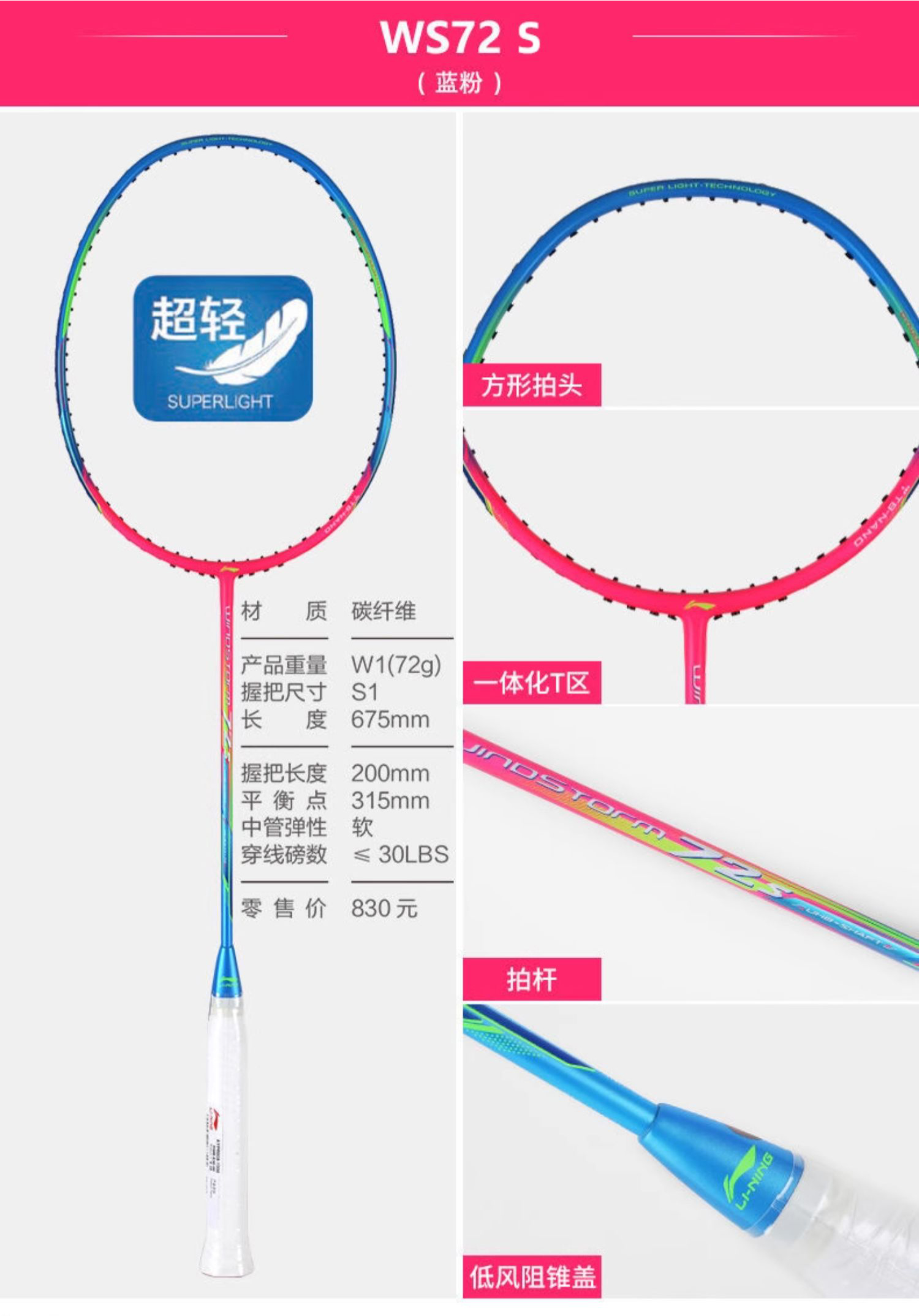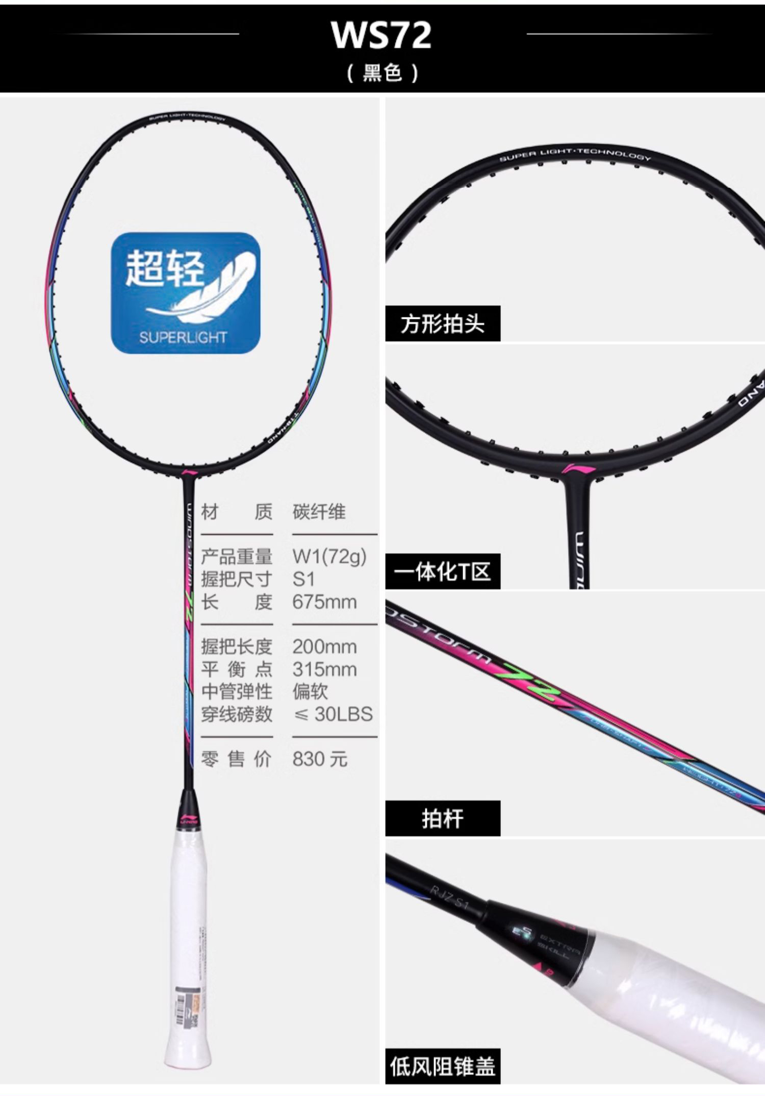 李宁 羽球拍 WindStorm超轻72 W72 AYPT437 / AYPT431 / AYPT427