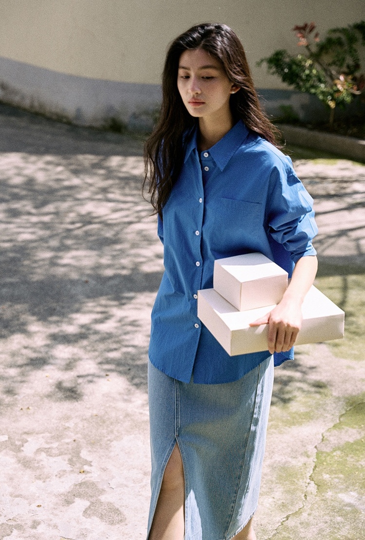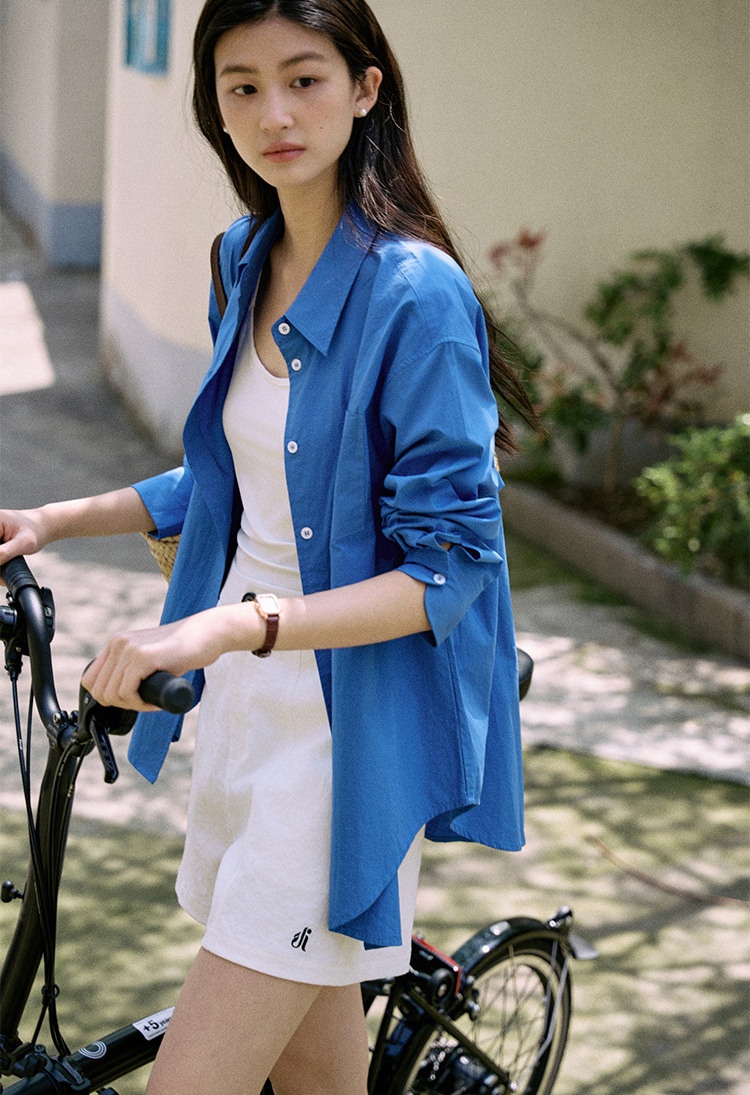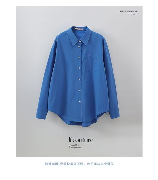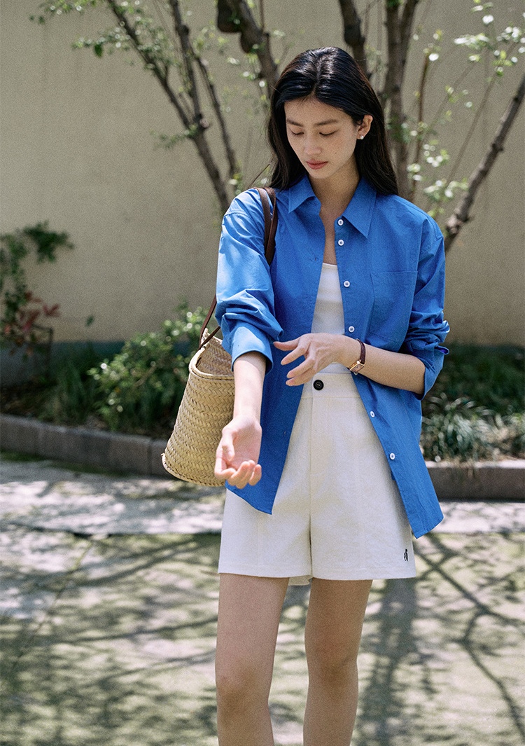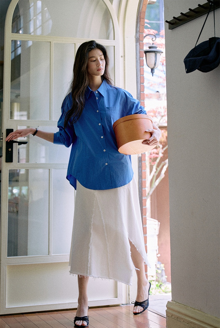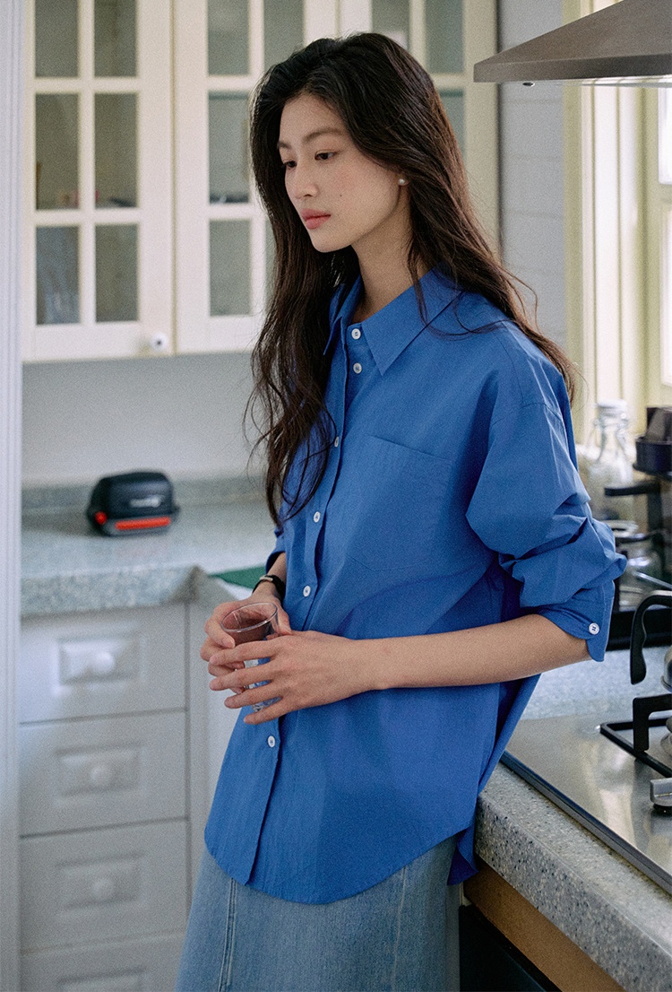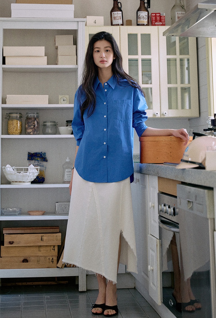 纯棉材质,轻柔,克莱因蓝色日常休闲和通勤都会很加分提气。简洁经典的燕尾领可以在各种场合进行搭配叠穿,衣摆的弧度会比正常款更加明显些,修饰腰部线条。整体线条笔直与圆滑的搭配让风格更加平衡。50支精梳密纺冰花棉工艺,高支高密,后整砂洗工艺让布面呈现轻微冰花褶皱质感棉感丰满手感细腻,成衣挺括又温润。