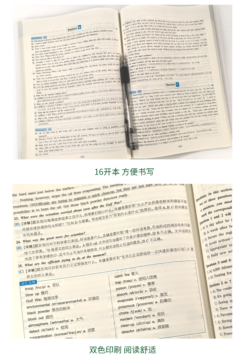 3. 解析详细,综合训练部分注释听力篇章的词汇;