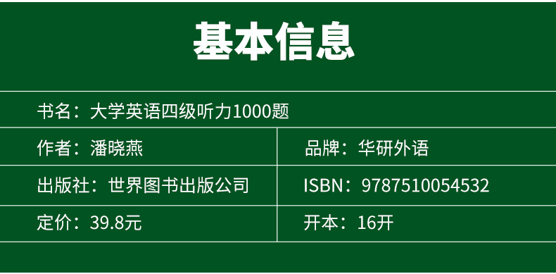 - 本店是“华研外语”品牌商自营店,全国所有“华研外语”、“华研教育”品牌图书都是我司出版发行的,本店为华研官方源头出货,所有图书均为正规正版,拥有实惠与正版的保障!!!