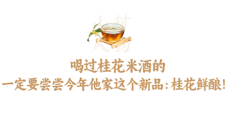 历经两年研发了一款极好喝的米酒。是取当季鲜桂花蒸取纯桂花露,与糯米深度发酵酿的一款新品。