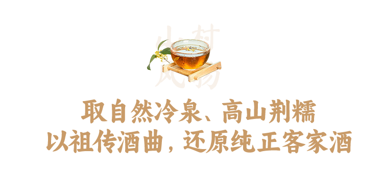 ▍桂花露二次发酵:特制桂花露替代普通用水,提升75%香气留存。在发酵中段,注入鲜桂花提纯的桂花露,让每一滴酒都与花香深情相拥,成就更细腻的口感,更持久的芬芳。