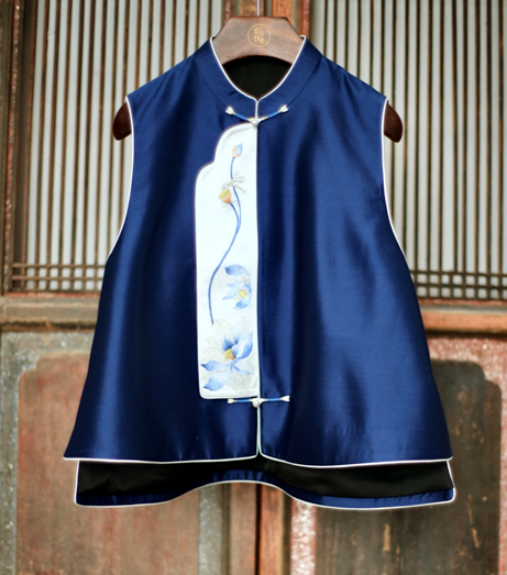 盛唐牡丹大师系列-卢梅红 | 重缎真丝手绣偏襟马甲(盛唐牡丹与非遗传承人卢梅红联名系列)