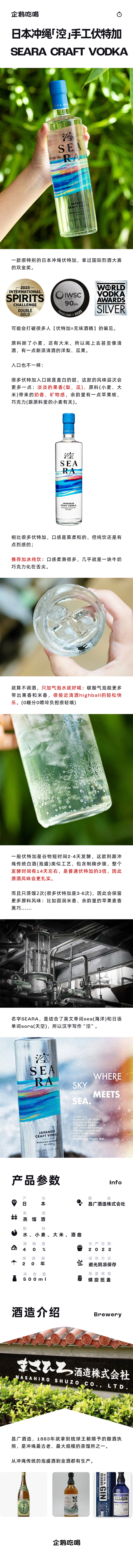 企鹅市集|日本冲绳县 涳 手工伏特加500ml 国际烈酒大赛双金奖 牛奶巧克力苹果梨瓜香 口感柔和